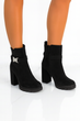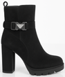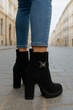 CZARNE DAMSKIE BOTKI NA SŁUPKU ZAMSZOWE OZDOBA MARGARET