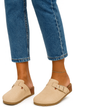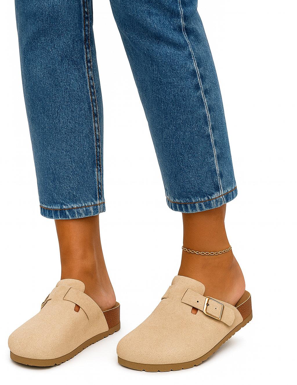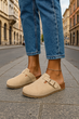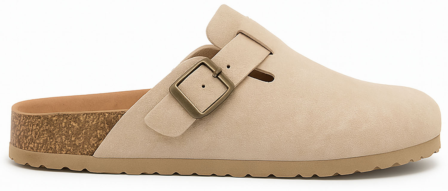 BEŻOWE KLAPKI Z KLAMRAMI ZAMSZOWE NA KORKU MOROKI