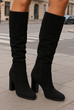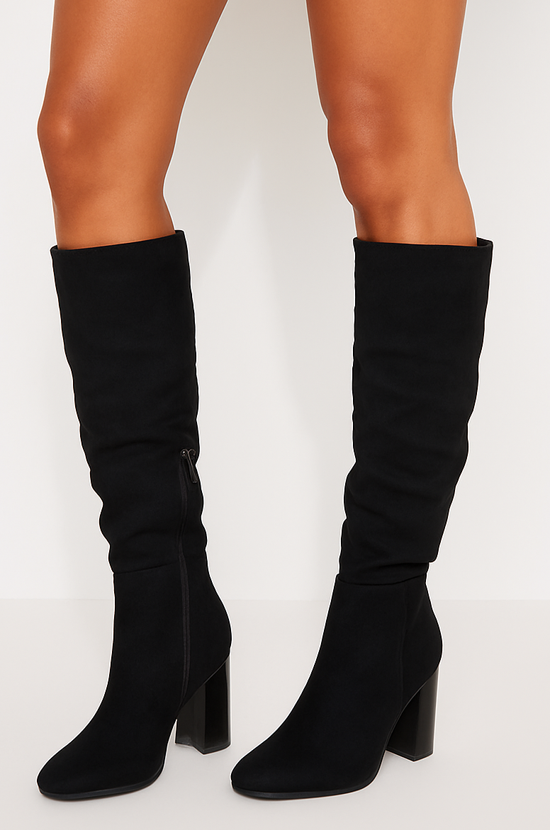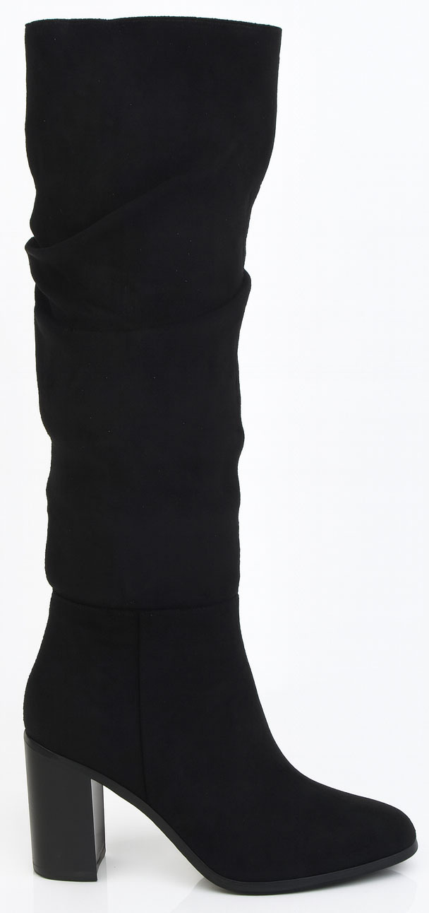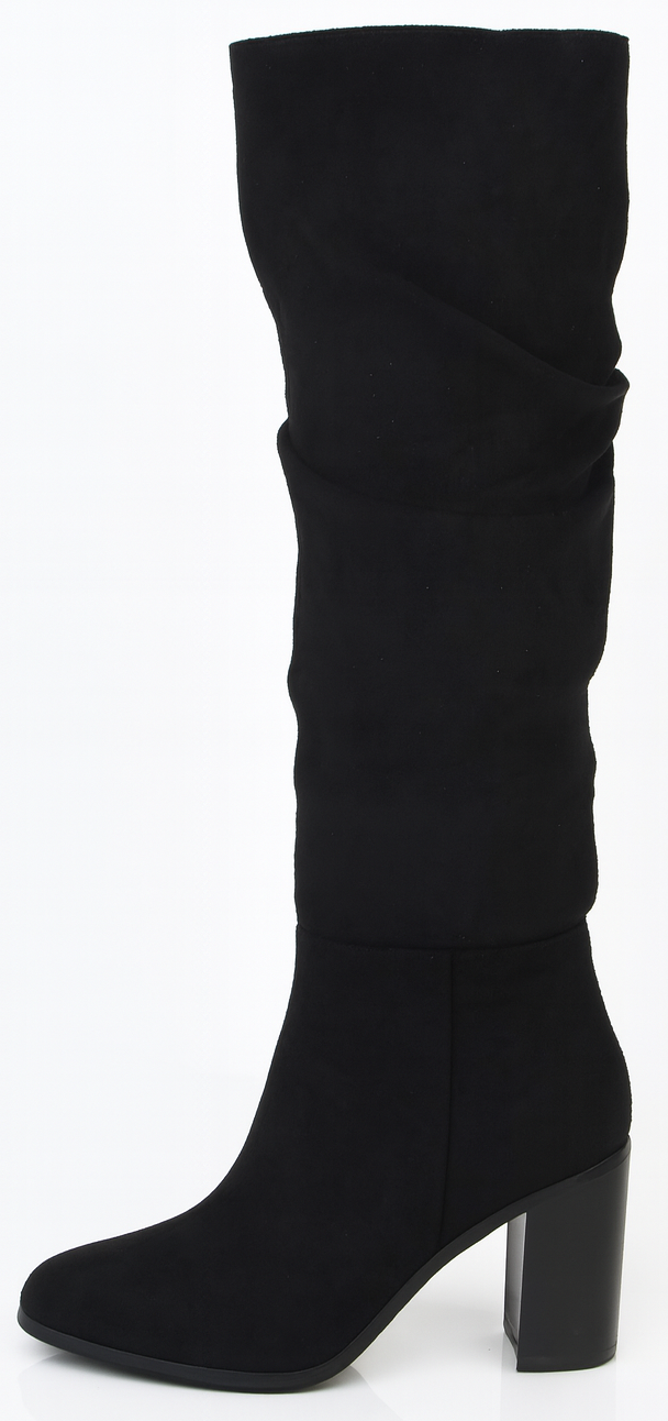 Klasyczny model kozaków na słupku, które łączą w sobie elegancję i wygodę. Te kozaki posiadają cholewkę wykonaną z zamszu, co nadaje im ekskluzywny wygląd. Zapięcie na zamek ułatwia ich zakładanie i zdejmowanie, co jest praktyczne podczas szybkiego ubierania się. Płaski słupek sprawia, że te kozaki są stabilne, co zapewnia wygodę podczas chodzenia, nawet przez dłuższy czas. Klasyczny design tych kozaków czyni je uniwersalnymi i łatwo można je zestawić zarówno z codziennymi, jak i bardziej formalnymi stylizacjami. Są one idealne zarówno do spódnic, sukienek, jak i do spodni czy jeansów. Te klasyczne kozaki na słupku są doskonałe na jesienne i zimowe dni, dodając elegancji każdej zimowej stylizacji.