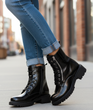 Wnętrze butów zostało starannie ocieplone miękkim, przyjemnym w dotyku materiałem, który gwarantuje komfort termiczny nawet w chłodne, zimowe dni. Dzięki temu botki świetnie sprawdzą się jesienią i zimą, zapewniając ciepło oraz wygodę przez cały dzień. Solidna, gruba podeszwa wykonana z tworzywa o właściwościach antypoślizgowych zapewnia stabilność i pewność kroku niezależnie od pogody. Czarne lakierowane botki to model niezwykle uniwersalny – doskonale prezentują się w połączeniu z dopasowanymi spodniami, legginsami, a także z sukienkami czy spódnicami, dodając stylizacji charakteru i nuty rockowego pazura. Można je nosić zarówno na co dzień, jak i na specjalne okazje, gdy chcesz wyglądać modnie, ale jednocześnie czuć się komfortowo.