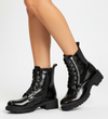 CZARNE DAMSKIE BOTKI OCIEPLANE GLANY LAKIEROWANE ADORA