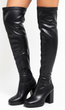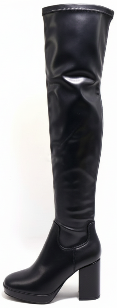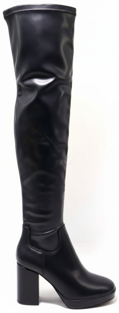 Czarne kozaki za kolano wykonane z mięciutkiej skóry ekologicznej. Lekko elastyczny materiał sprawi, że buty pięknie dopasują się do Twoich nóg. Najwygodniejszy model na platformie pasujący do wielu stylizacji. Wysoka cholewka sięgająca za kolano nadaje im niezwykle kobiecy wygląd i zapewnia dodatkową ochronę przed chłodem. Kozaki są miękkie, wygodne i stabilne, dzięki czemu doskonale sprawdzają się podczas długiego noszenia. o obuwie, które nie tylko podkreśla kobiecą sylwetkę, ale również zapewnia komfort i ciepło w chłodniejsze dni. Idealne na co dzień, do pracy, jak i na wyjątkowe okazje – zawsze dodadzą elegancji i klasy każdemu outfitowi.