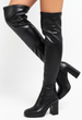 • Czarne kozaki za kolano wykonane z mięciutkiej skóry ekologicznej. Lekko elastyczny materiał sprawi, że buty pięknie dopasują się do Twoich nóg. Najwygodniejszy model na platformie pasujący do wielu stylizacji.