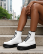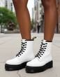 Białe botki trapery skórzane damskie sznurowane to połączenie nowoczesnego stylu, wygody i jakości, które doskonale sprawdza się w każdej porze roku. Wykonane z wysokogatunkowej naturalnej skóry, zachwycają eleganckim wyglądem i trwałością, a ich modny biały kolor przyciąga wzrok i nadaje stylizacji świeżości oraz lekkości. Skórzana cholewka jest miękka, elastyczna i odporna na warunki pogodowe, dzięki czemu buty zachowują swój kształt i estetyczny wygląd nawet po długim użytkowaniu.