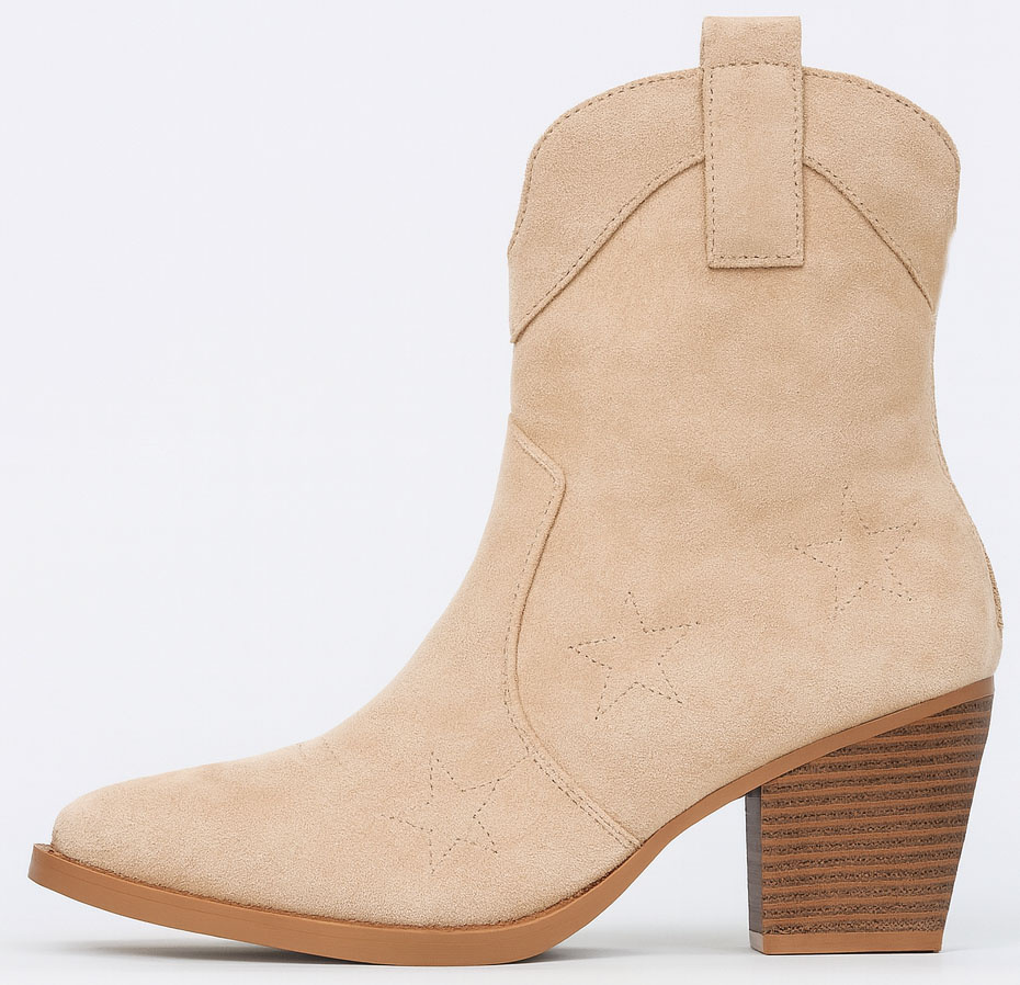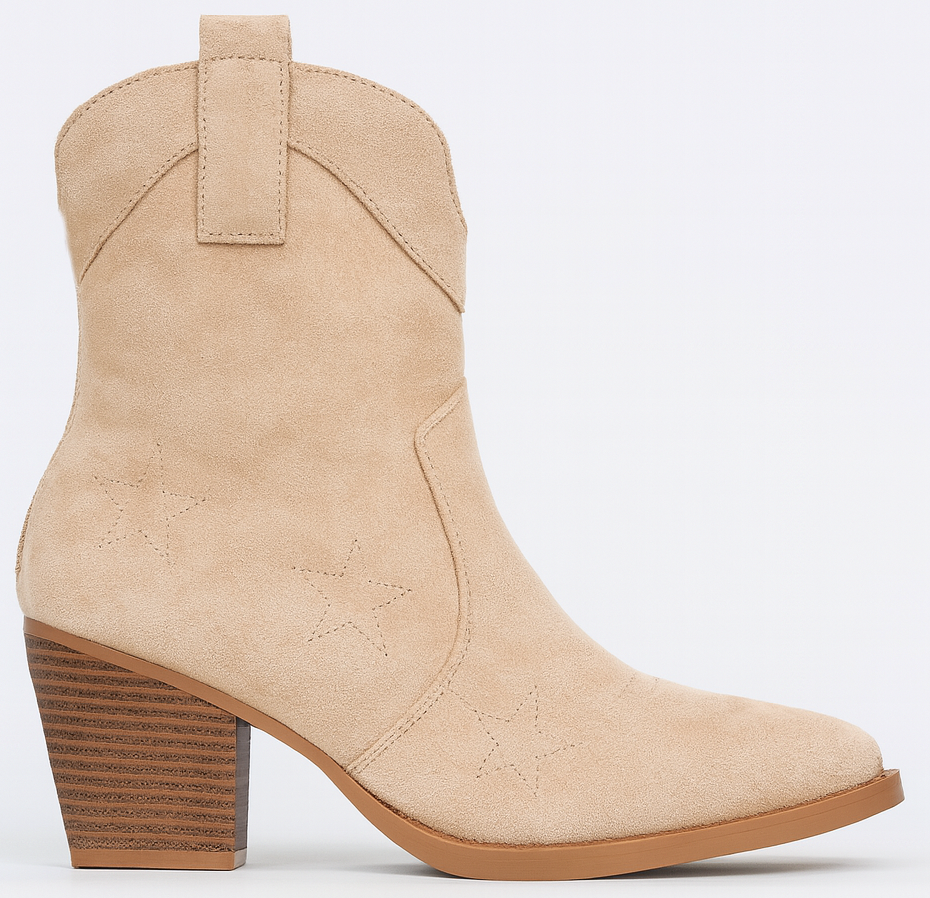 BEŻOWE ZAMSZOWE WYSOKIE KOWBOJKI BOTKI SŁUPEK DORITA