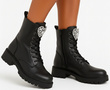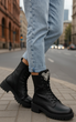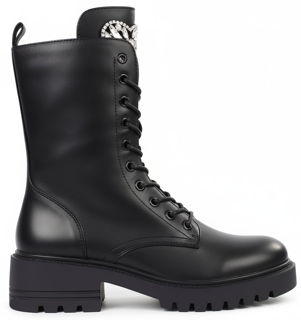 DAMSKIE CZARNE SKÓRZANE BOTKI TRAPERY NA PLATFORMIE GRANDA