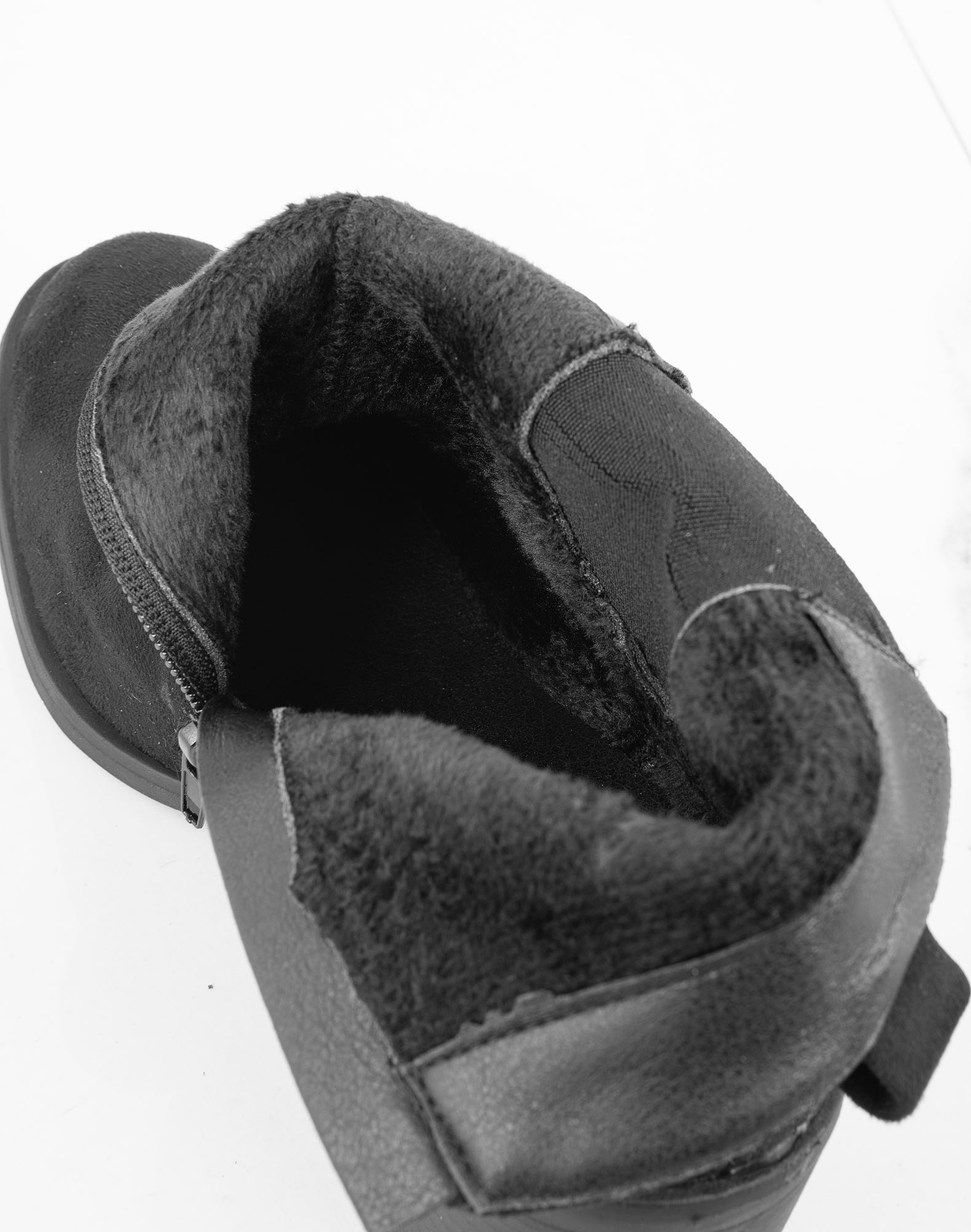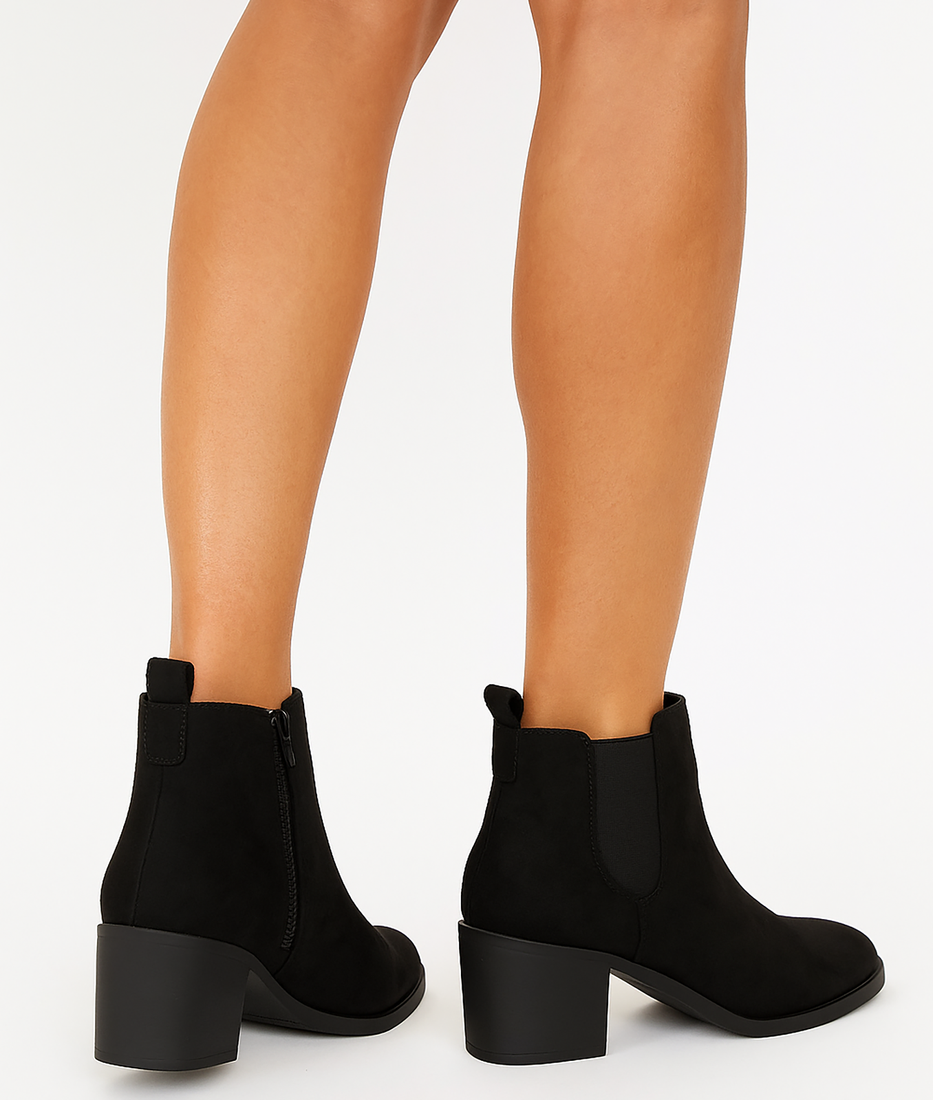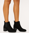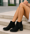 • Klasyczne botki z miękkiego zamszu w głębokiej czerni to must-have na każdy sezon. Stabilny obcas typu słupek zapewnia komfort, a elastyczne wstawki i suwak ułatwiają zakładanie. Idealne do jeansów, sukienki czy płaszcza - dodadzą elegancji stylizacji.
