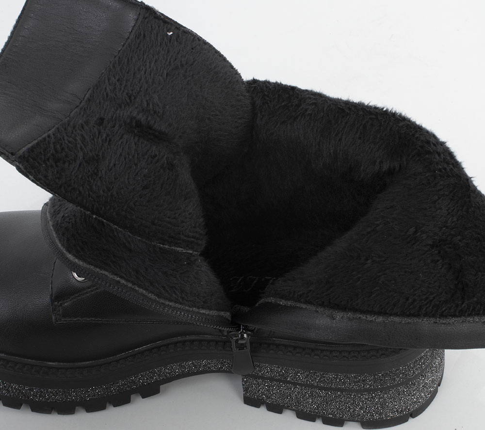 CZARNE SKÓRZANE DAMSKIE BOTKI OCIEPLANE GLANY WORKERY BENTA