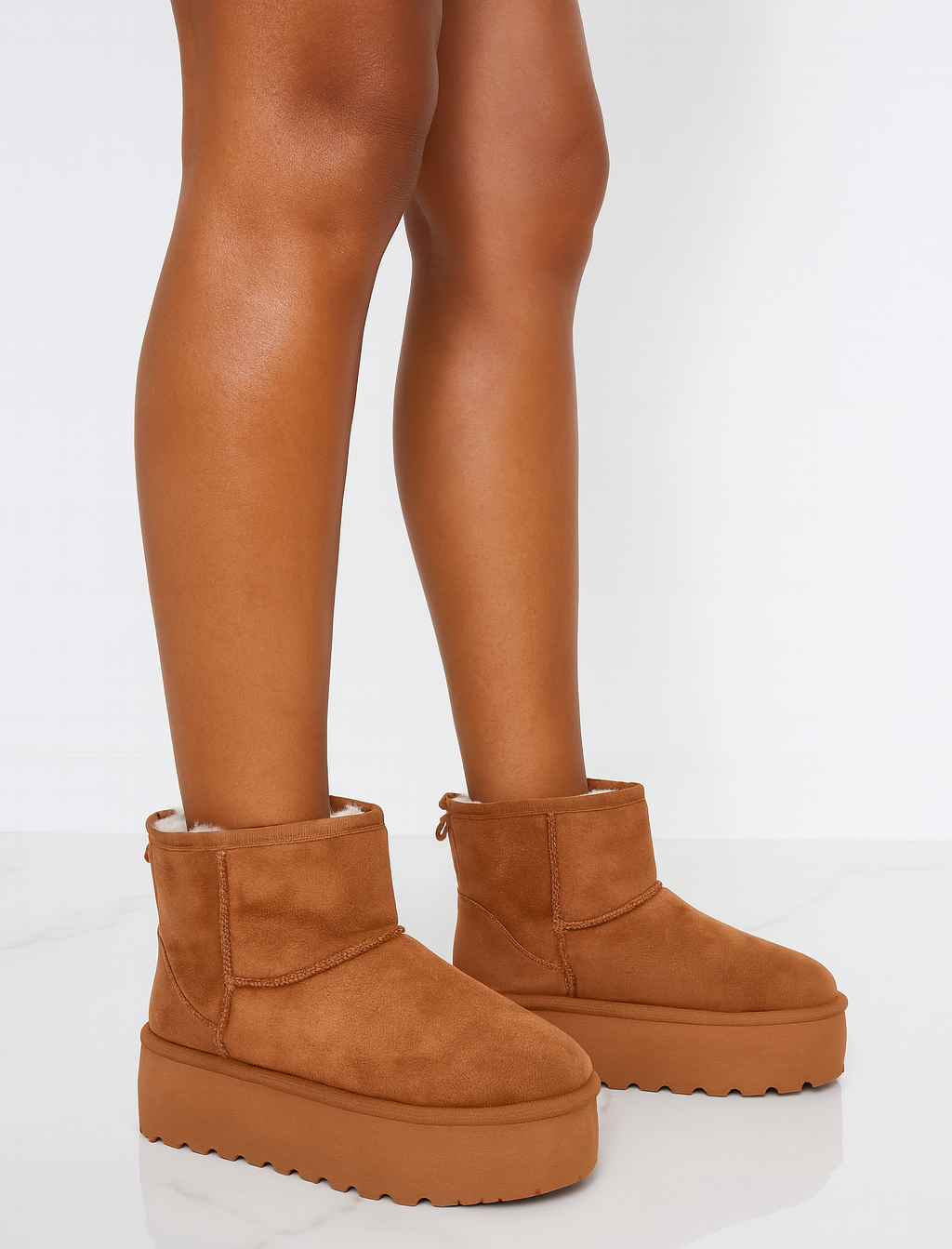 Przygotuj się na zimę w wielkim stylu! Przedstawiamy absolutny hit i najgorętszy trend, który szturmem zdobywa ulice – ciepłe, krótkie botki na masywnej platformie w luksusowym odcieniu karmelowego brązu.