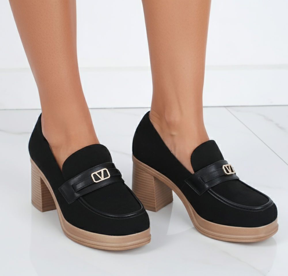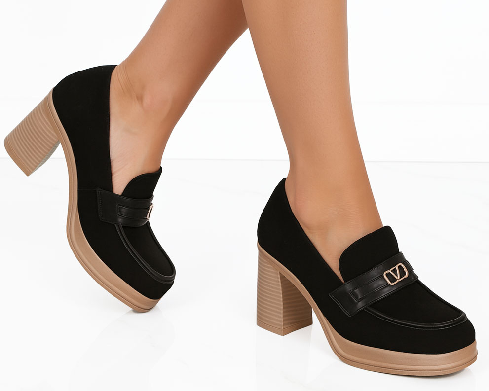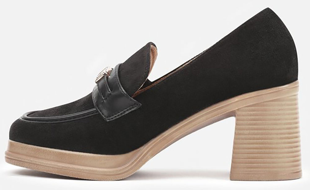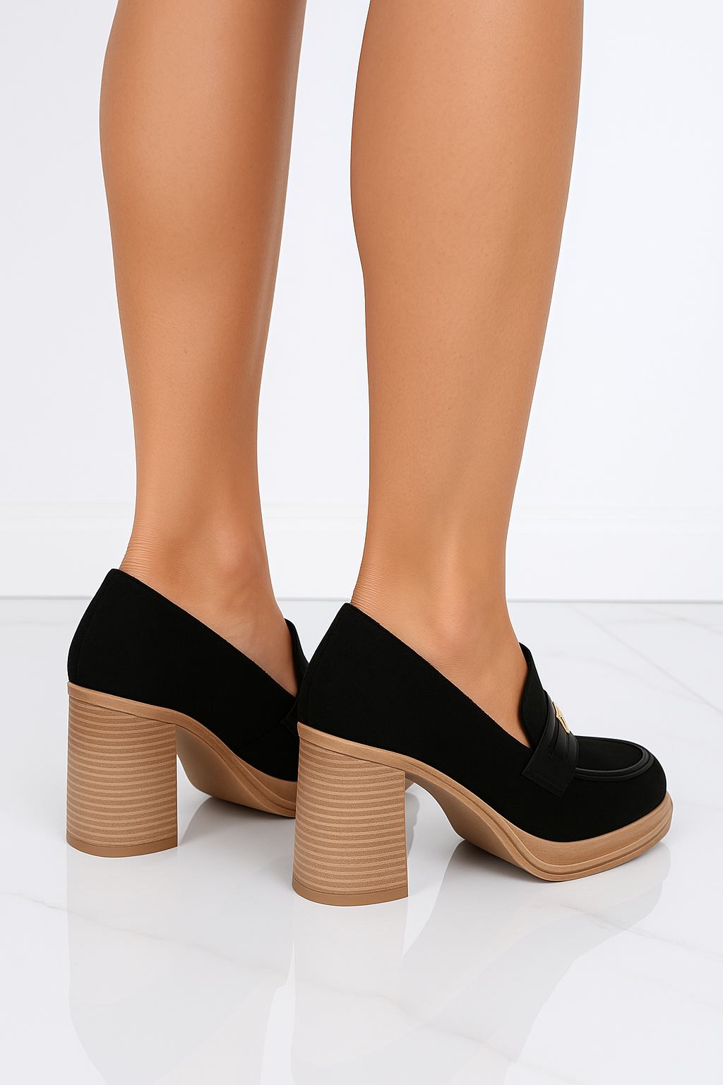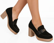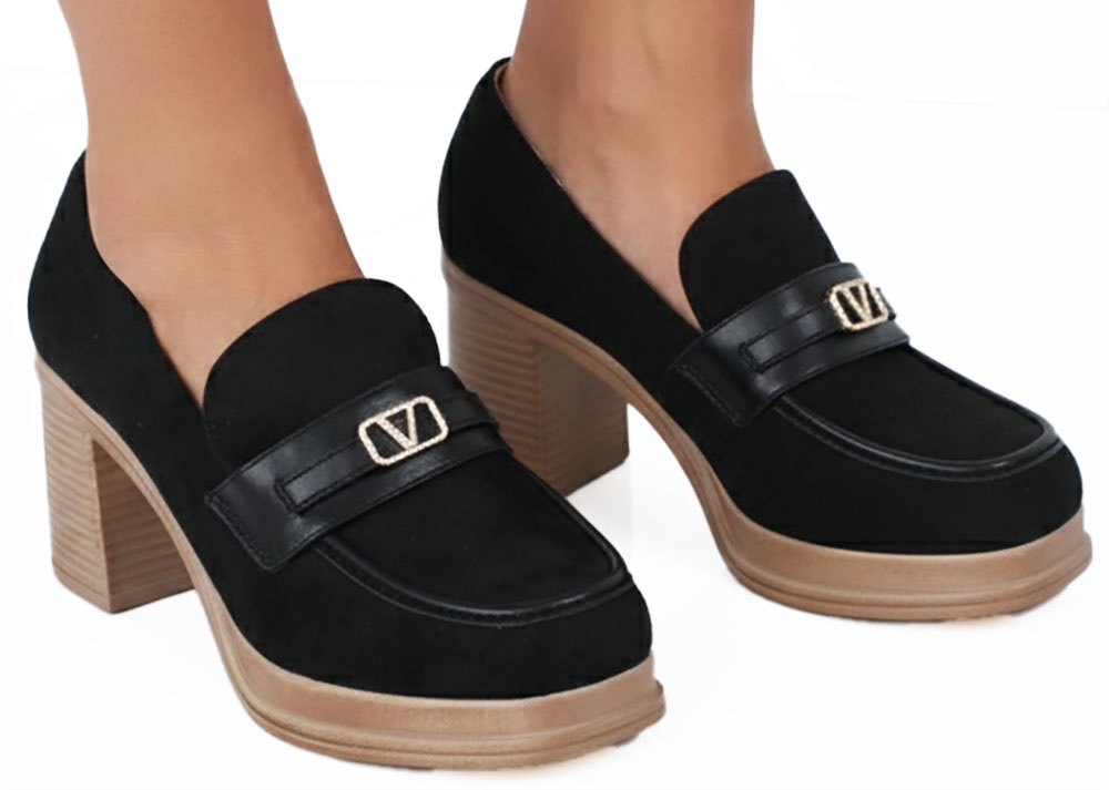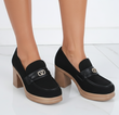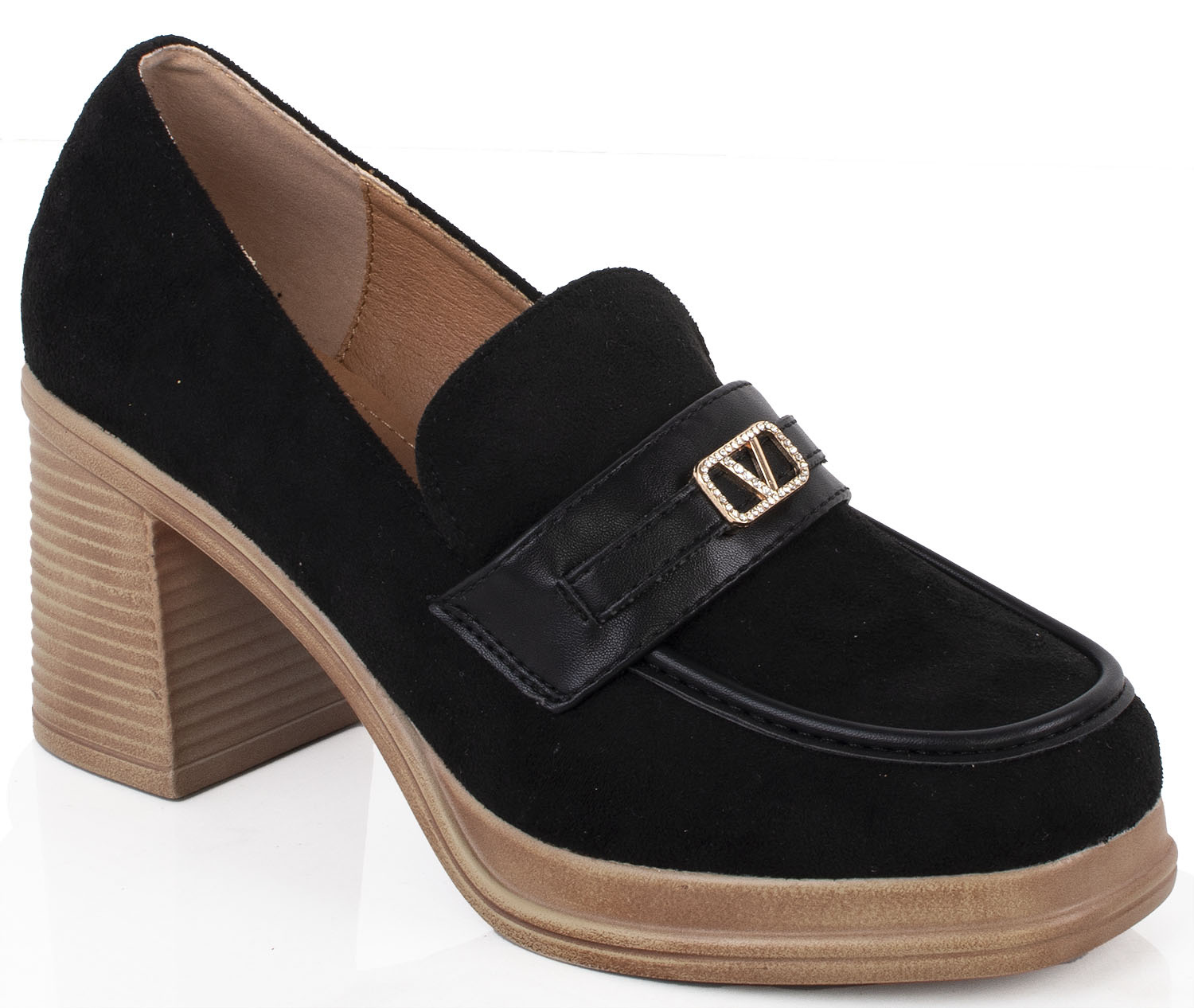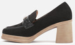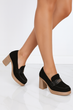 CZARNE DAMSKIE PÓŁBUTY NA OBCASIE ZAMSZOWE MOKASYNY RIALA
