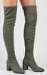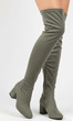 ZIELONE ZAMSZOWE KOZAKI ZA KOLANO NA SŁUPKU ZAMEK VLENI