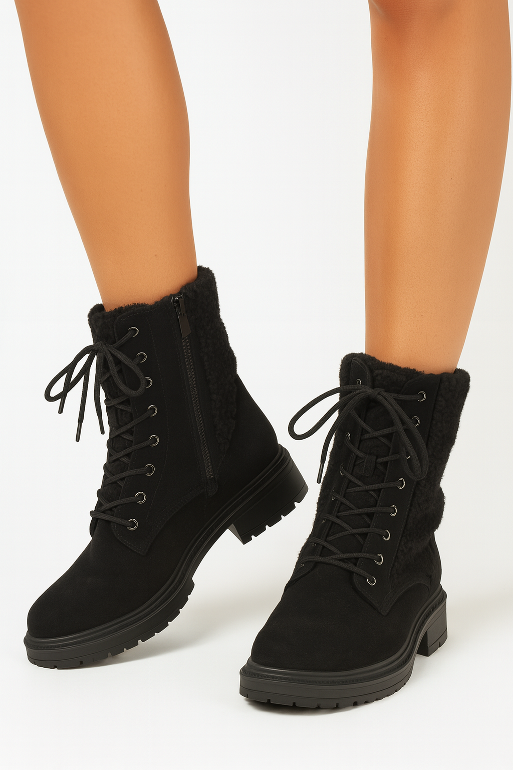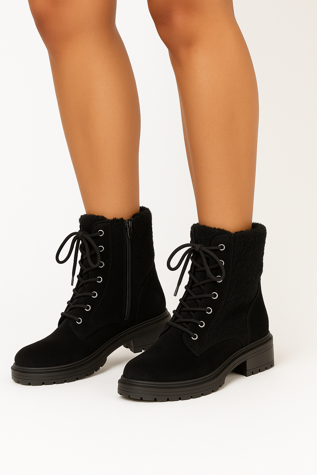 DAMSKIE CZARNE ZAMSZOWE BOTKI TRAPERY OCIEPLANE TULARA