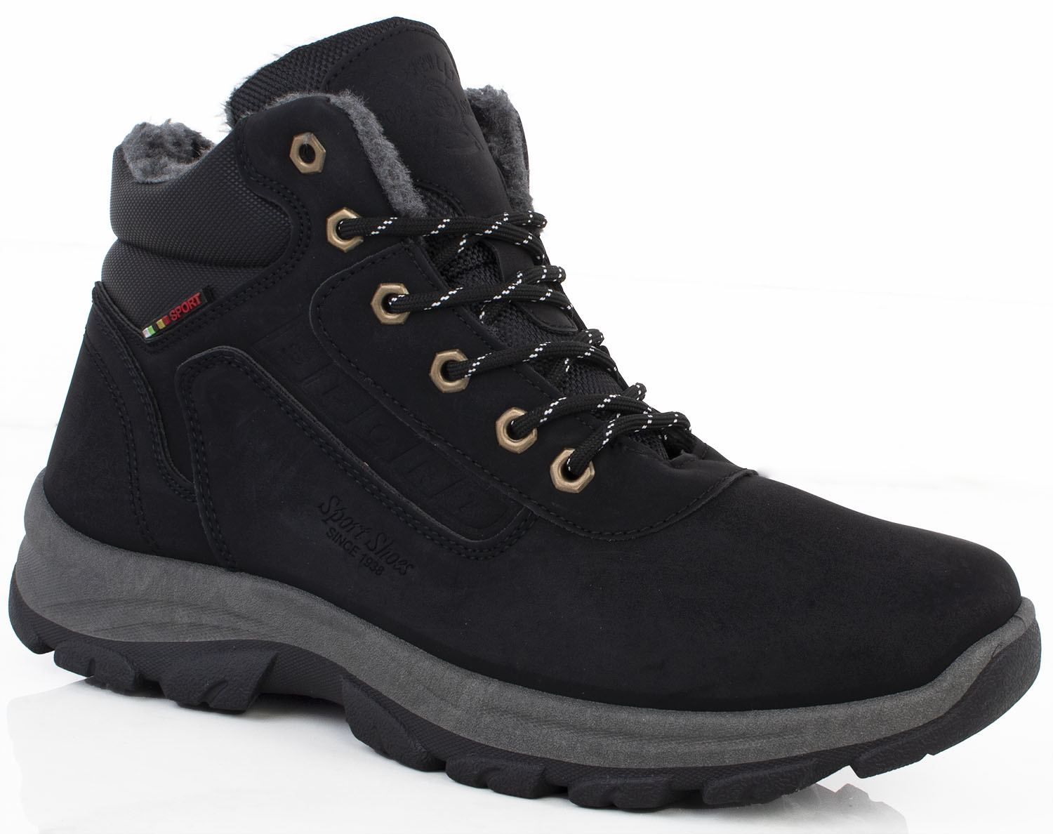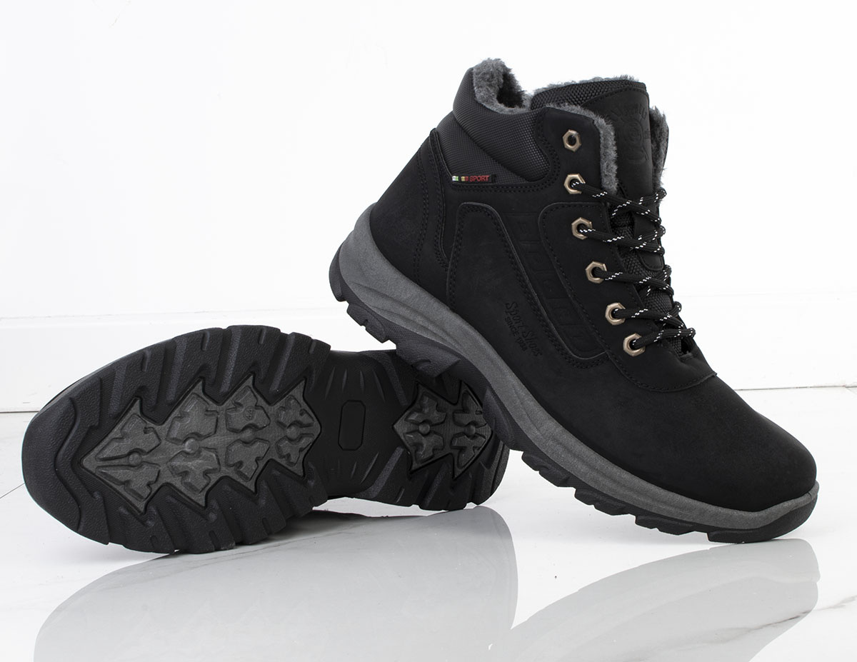 CZARNE MĘSKIE OCIEPLANE BUTY TREKKINGOWE TRAPERY