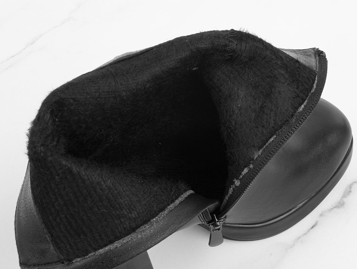Cholewka botków wykonana jest ze skóry ekologicznej, co gwarantuje trwałość i estetyczny wygląd. Elastyczne wstawki po bokach cholewki nie tylko dodają butom elegancji, ale także umożliwiają łatwe zakładanie i zdejmowanie obuwia. To rozwiązanie jest szczególnie wygodne dla osób, które cenią sobie szybkie i bezproblemowe przygotowanie się do wyjścia.