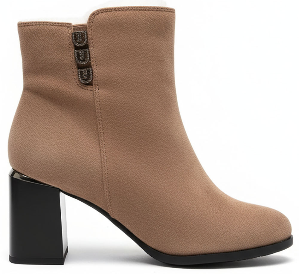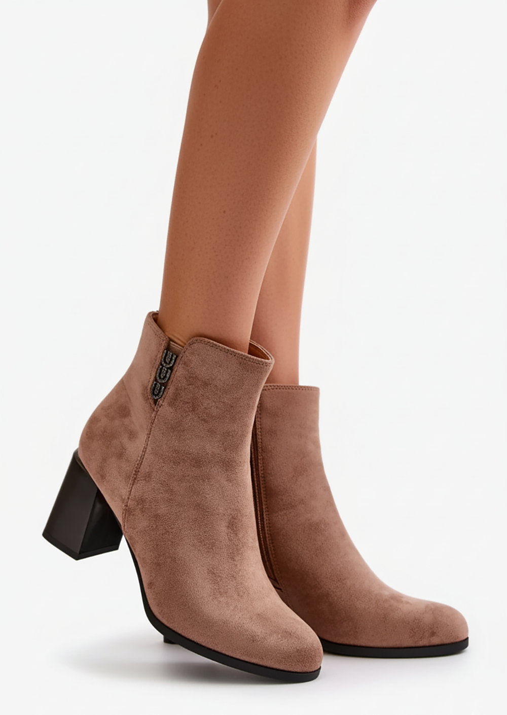 BEŻOWE DAMSKIE BOTKI ZAMSZOWE NA SŁUPKU ZAMEK BRIOGEN