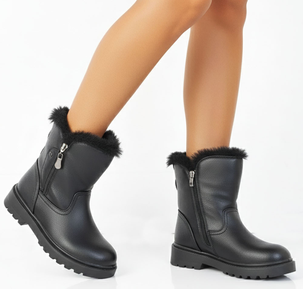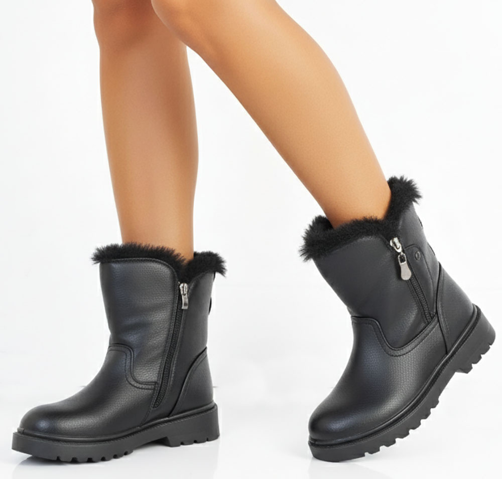 • Czarne botki ocieplane to wygodne i stylowe obuwie, które zapewnia komfort i ciepło podczas chłodniejszych dni. Zapięcie na suwak ułatwia zakładanie, a miękkie ocieplenie sprawia, że są idealnym wyborem na zimę.