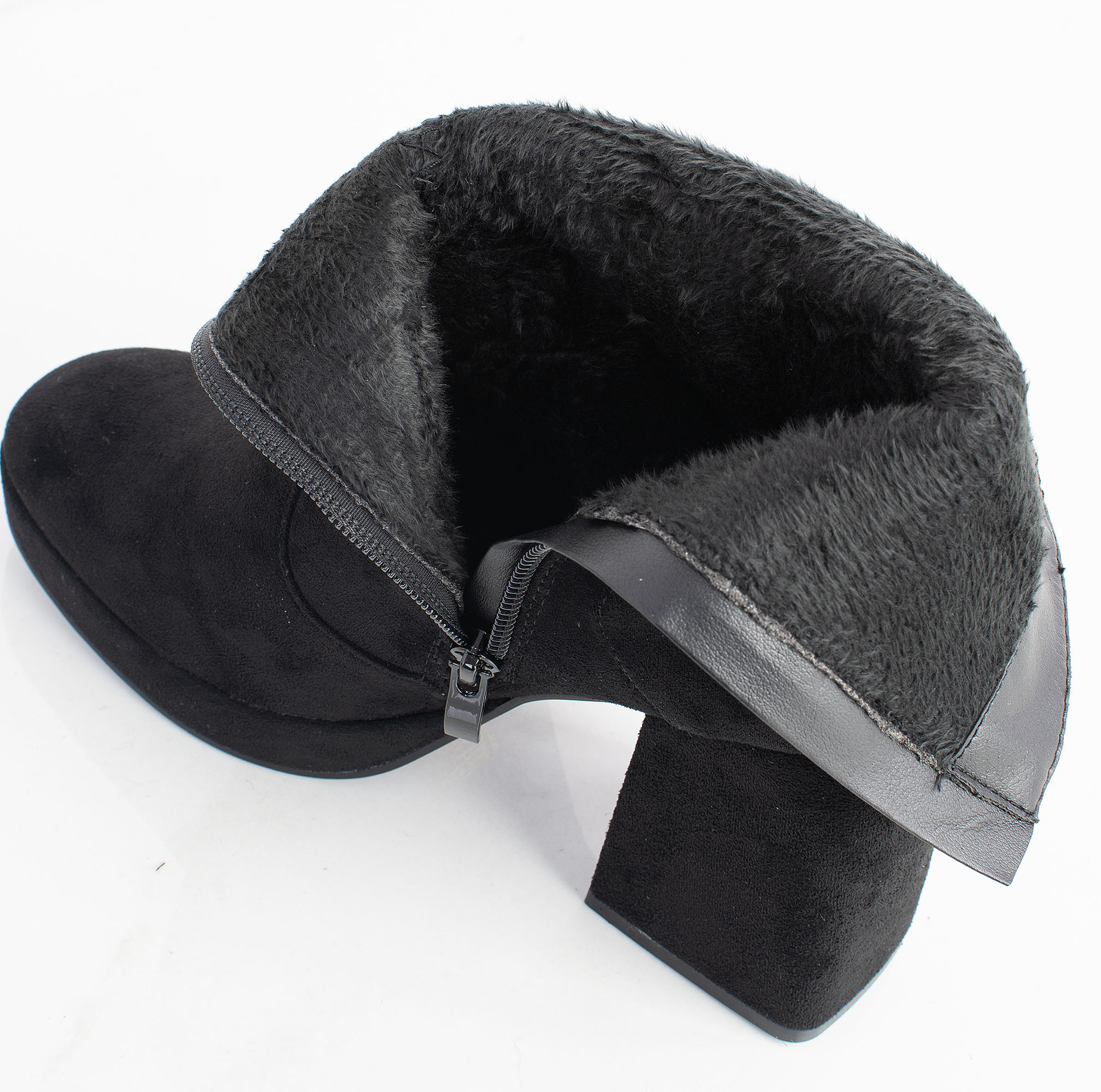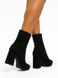 CZARNE OCIEPLANE DAMSKIE BOTKI NA SŁUPKU ZAMSZOWE ZAMEK