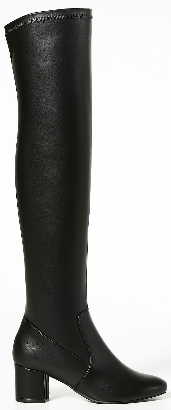 • Czarne kozaki za kolano wykonane z mięciutkiej skóry ekologicznej. Lekko elastyczny materiał sprawi, że buty pięknie dopasują się do Twoich nóg. Najwygodniejszy model na platformie pasujący do wielu stylizacji.