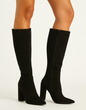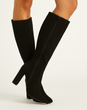 CZARNE DAMSKIE ZAMSZOWE KOZAKI NA OBCASIE ZAMEK