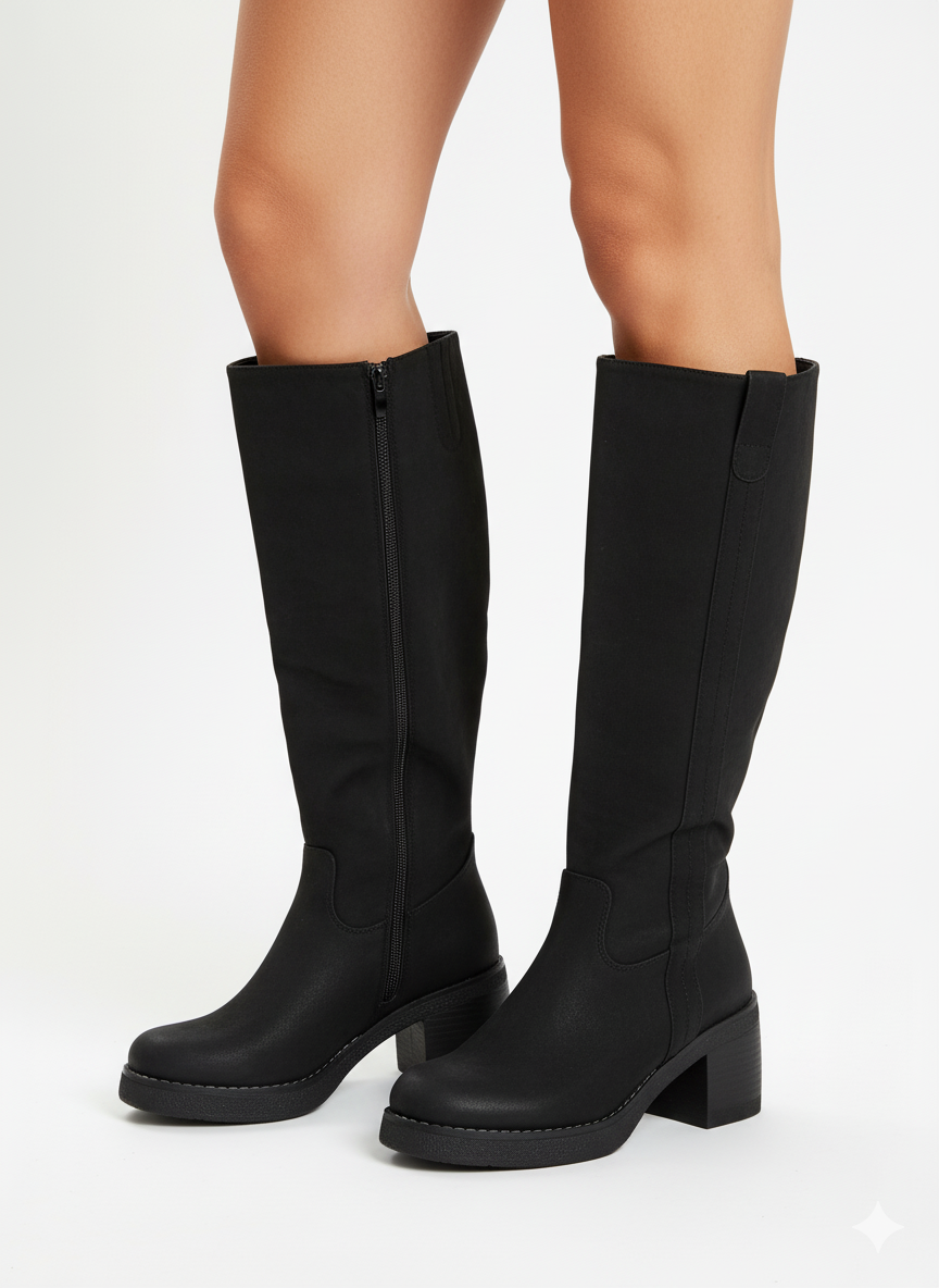• Czarne zamszowe kozaki to eleganckie i stylowe obuwie, które doskonale sprawdzi się w chłodniejszych miesiącach. Te klasyczne buty dodają szyku każdej stylizacji, zapewniając jednocześnie komfort i ochronę przed zimnem.