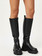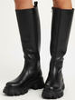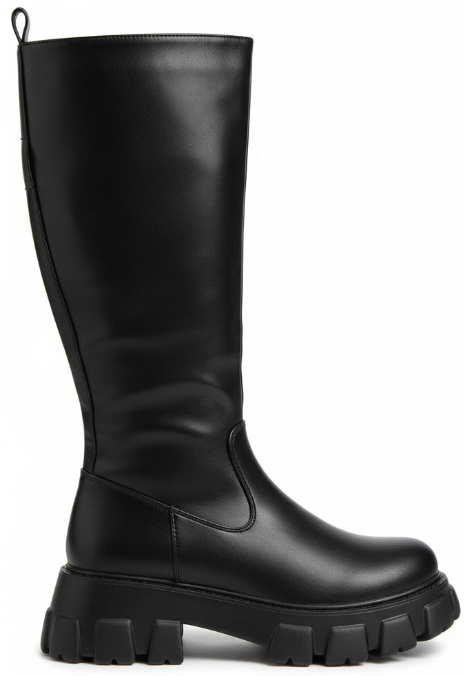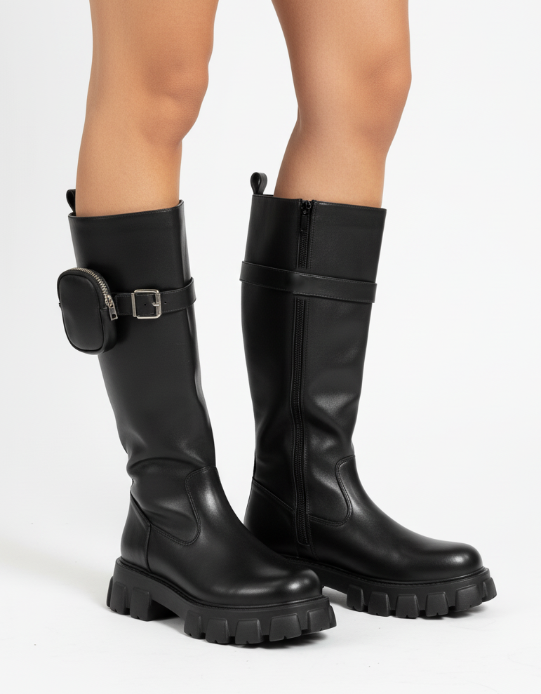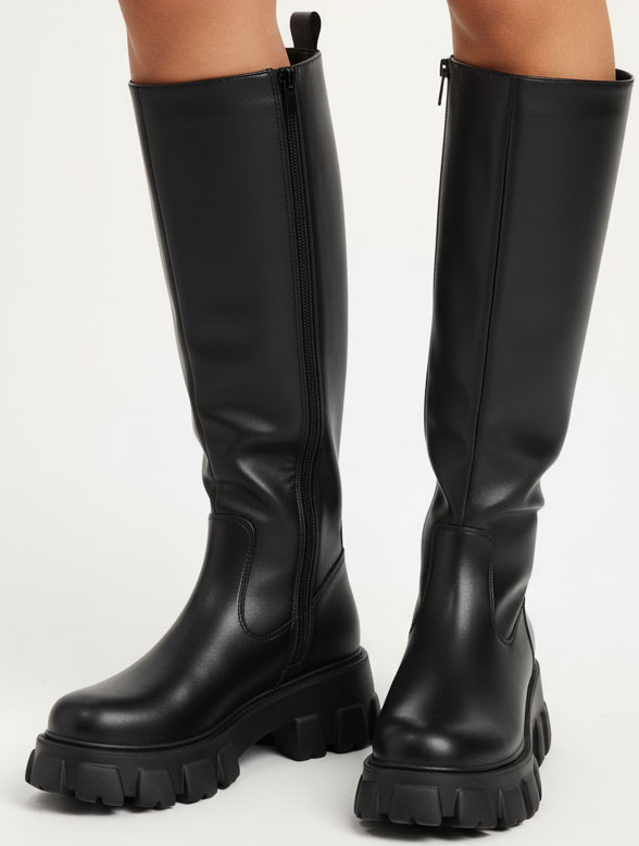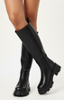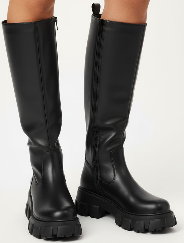 DAMSKIE CZARNE SKÓRZANE KOZAKI NA ZAMEK NA PLATFORMIE
