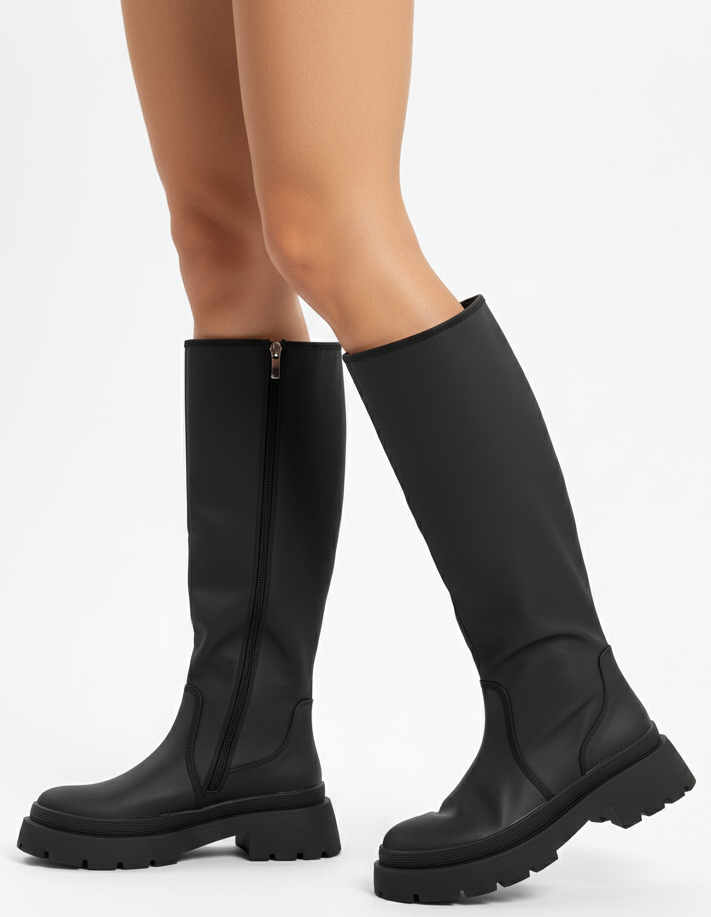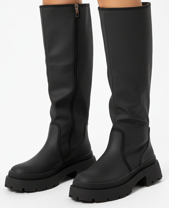DAMSKIE CZARNE SKÓRZANE KOZAKI NA ZAMEK NA PLATFORMIE CALDENO