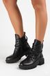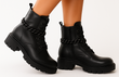 CZARNE SKÓRZANE BOTKI DAMSKIE OCIEPLANE TRAPERY GLANY PALINA
