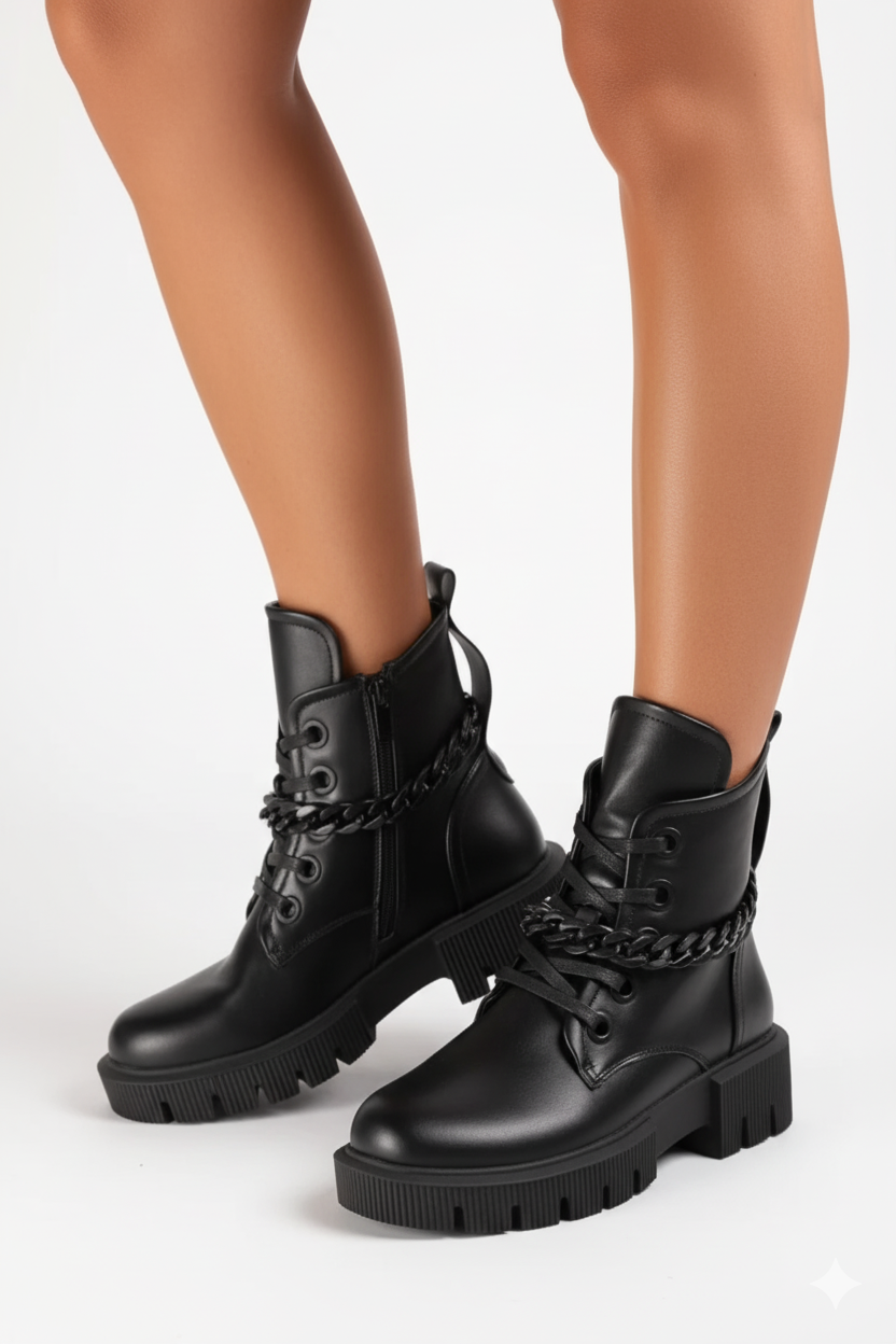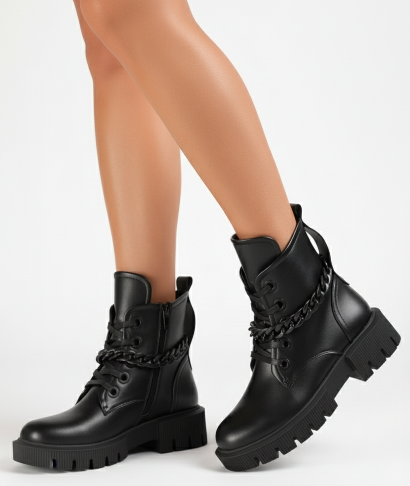 Zapięcie na zamek umieszczone z boku cholewki ułatwia zakładanie i zdejmowanie botków, co jest praktyczne i wygodne, zwłaszcza w pośpiechu.