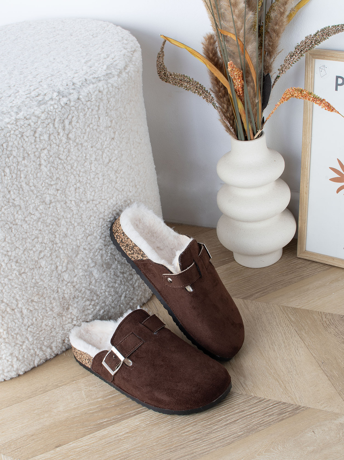 • Wygodne i ciepłe wsuwane kapcie, które są idealne na chłodniejsze dni, zapewniając komfort i ciepło stopom.