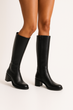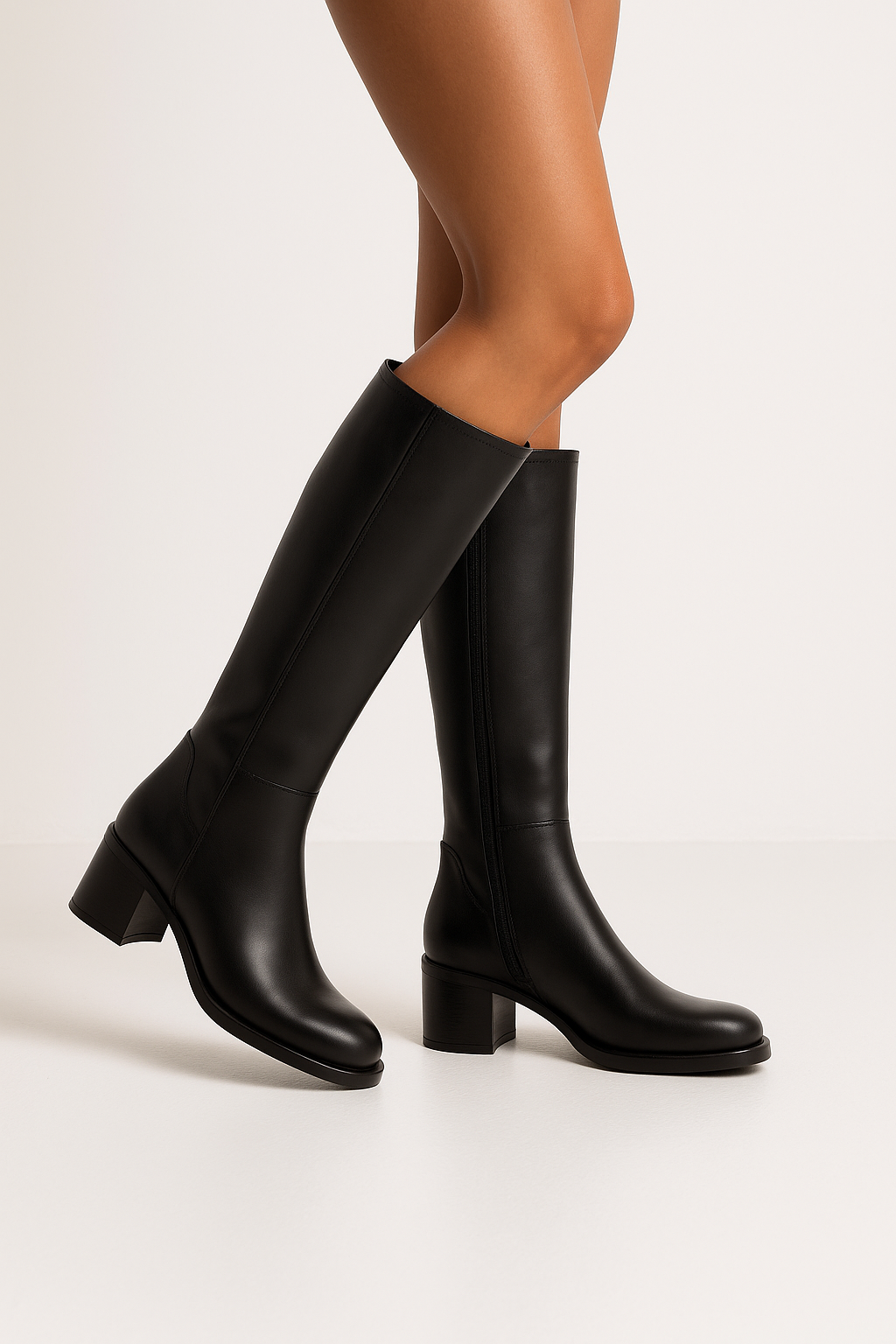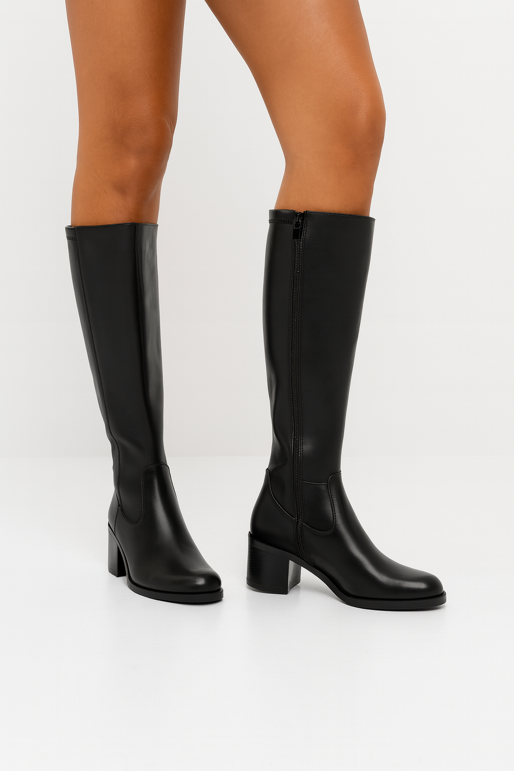 Płaski słupek sprawia, że te kozaki są stabilne, co zapewnia wygodę podczas chodzenia, nawet przez dłuższy czas. Klasyczny design tych kozaków czyni je uniwersalnymi i łatwo można je zestawić zarówno z codziennymi, jak i bardziej formalnymi stylizacjami. Są one idealne zarówno do spódnic, sukienek, jak i do spodni czy jeansów.
