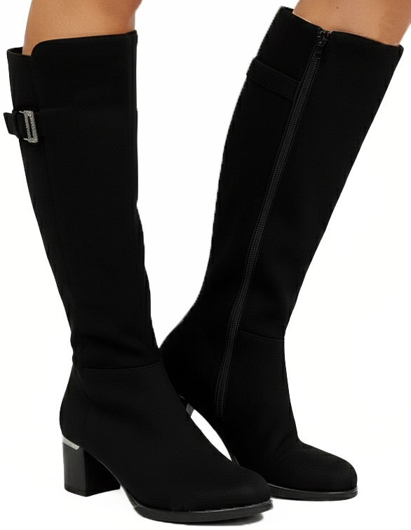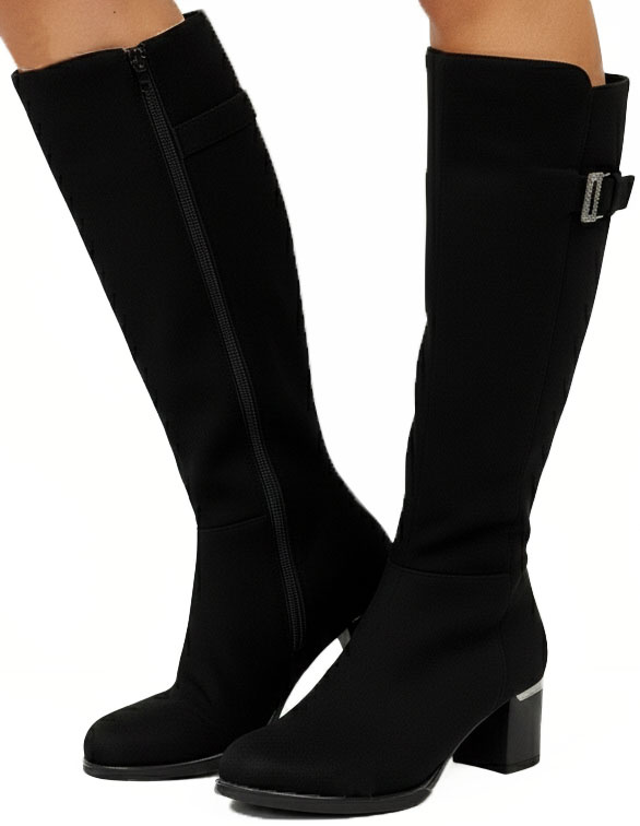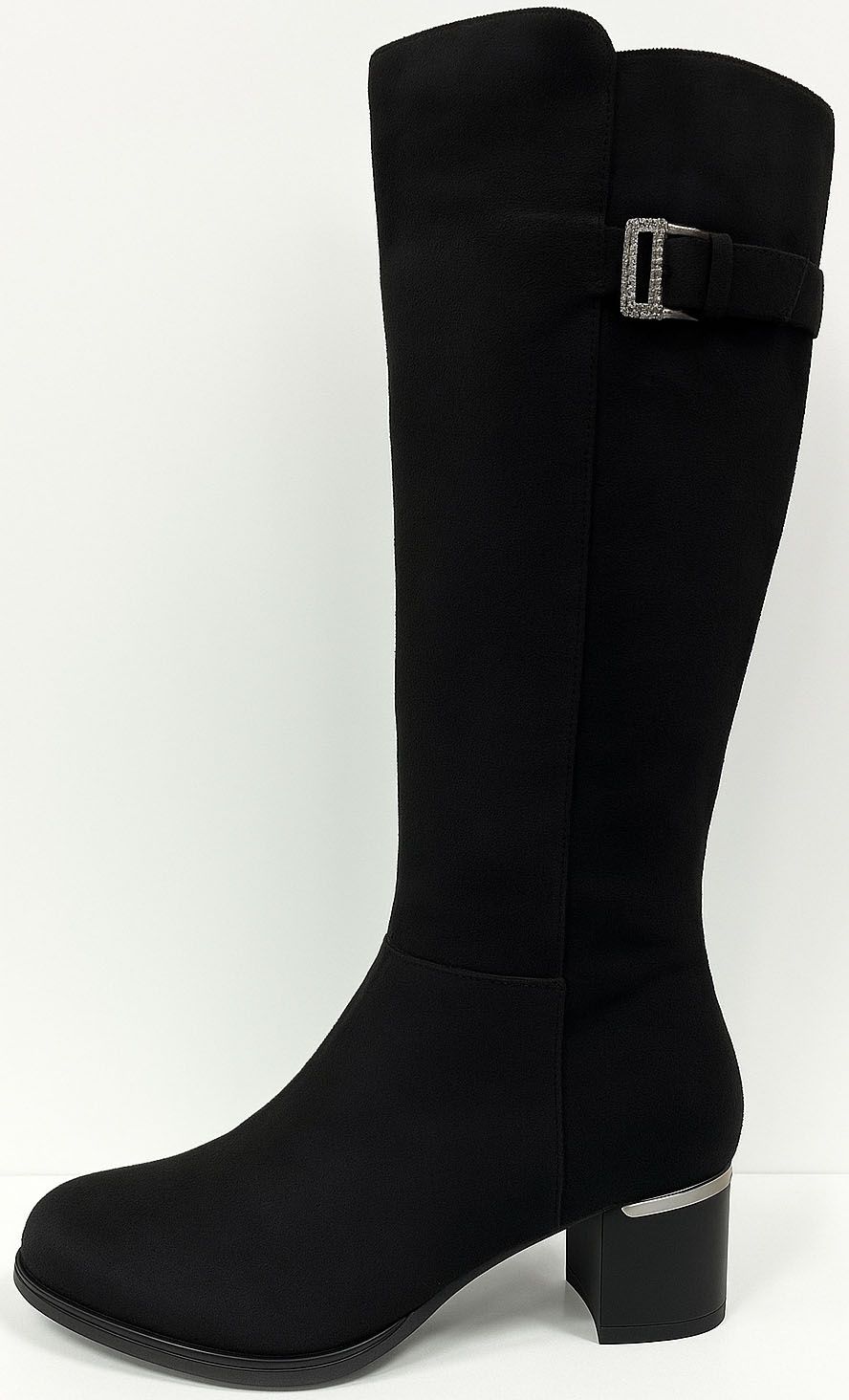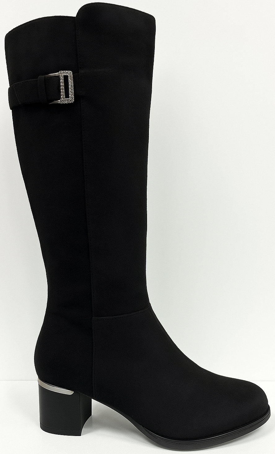 CZARNE ZAMSZOWE KOZAKI NA ZAMEK DAMSKIE SŁUPEK