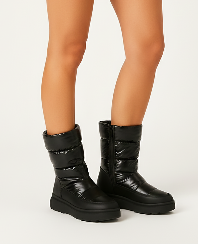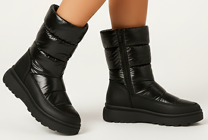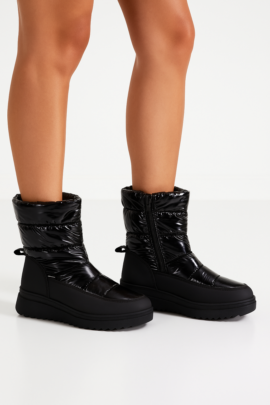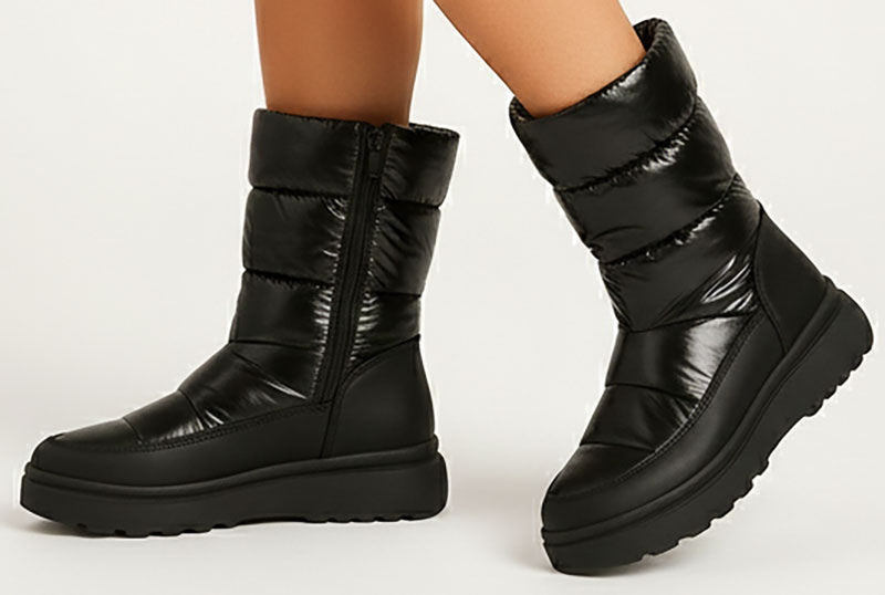 Obecność platformy nadaje butom modny wygląd, jednocześnie zwiększając komfort noszenia. Solidna podeszwa gwarantuje stabilność i ochronę przed ślizganiem się na śniegu czy lodzie. Model wsuwany ułatwia zakładanie i zdejmowanie butów, co jest praktyczne w zimowych warunkach.