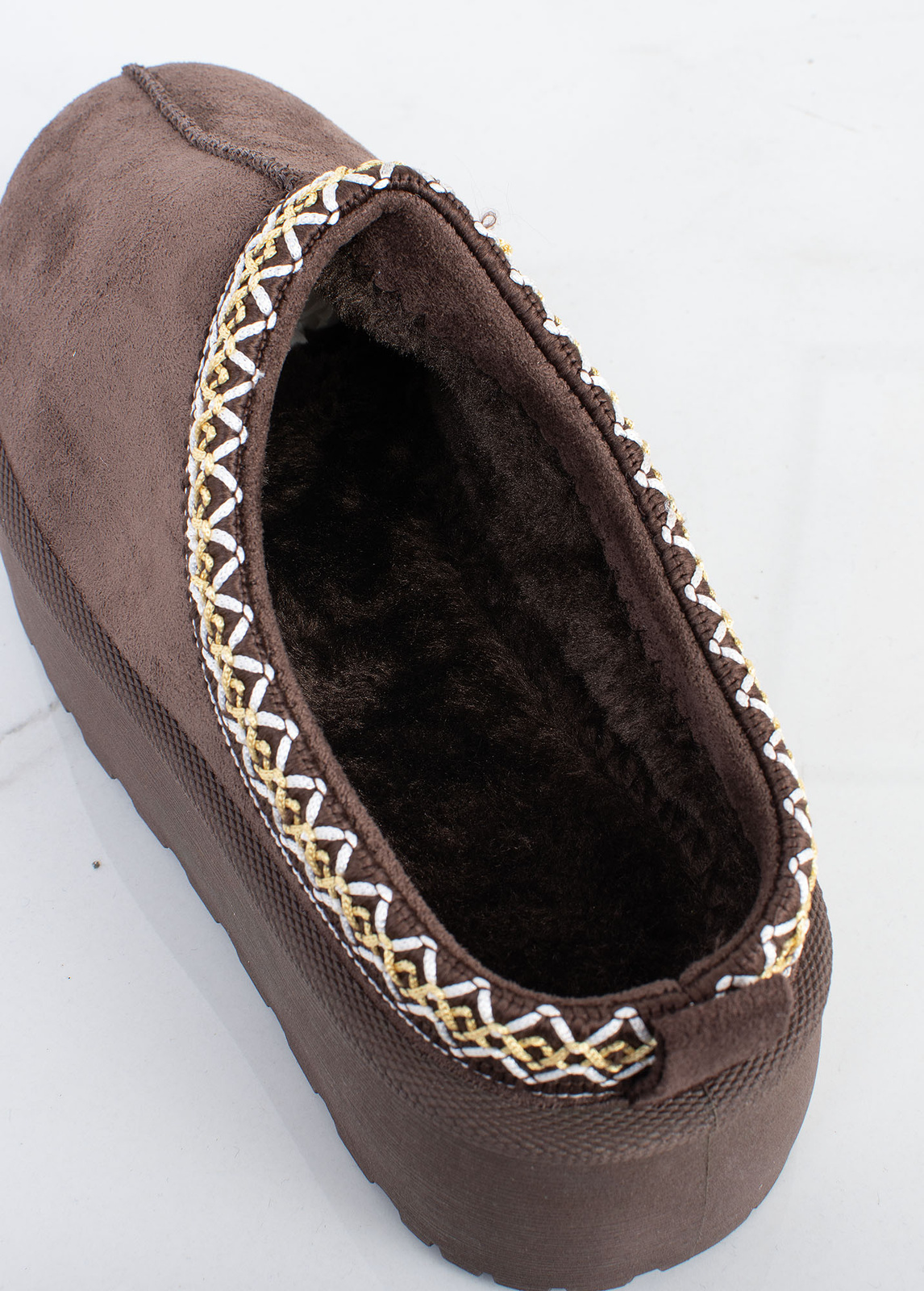 Wygodne i ciepłe wsuwane kapcie, które są idealne na chłodniejsze dni, zapewniając komfort i ciepło stopom.