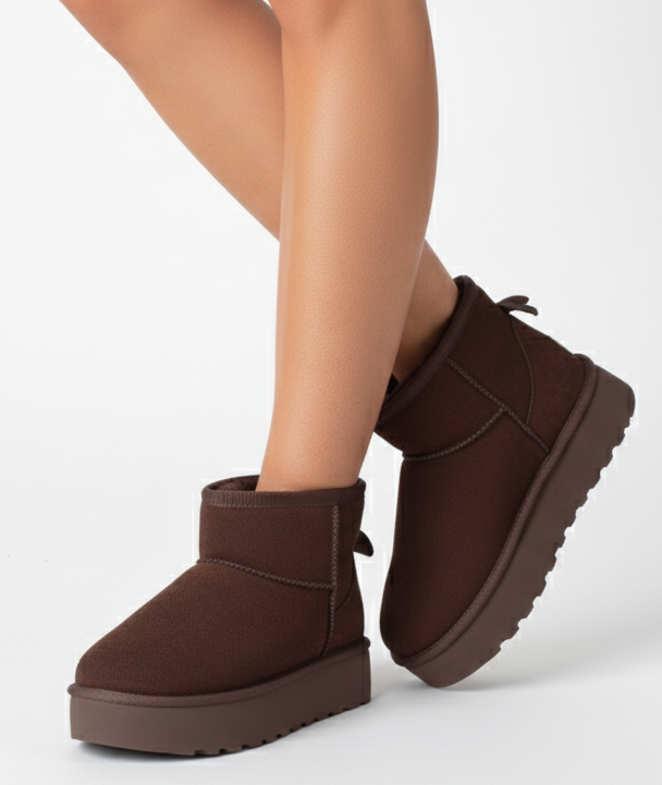 BRĄZOWE DZIECIĘCE ŚNIEGOWCE BOTKI OCIEPLANE NA PLATFORMIE CHOCO