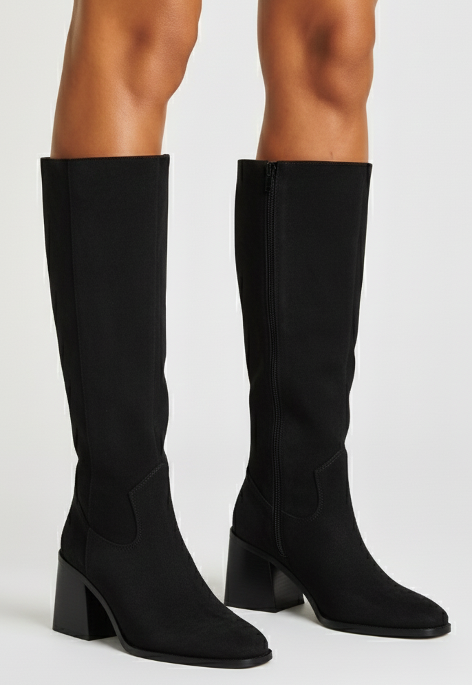 Klasyczny model kozaków na słupku, które łączą w sobie elegancję i wygodę. Te kozaki posiadają cholewkę wykonaną z zamszu, co nadaje im ekskluzywny wygląd. Zapięcie na zamek ułatwia ich zakładanie i zdejmowanie, co jest praktyczne podczas szybkiego ubierania się. Płaski słupek sprawia, że te kozaki są stabilne, co zapewnia wygodę podczas chodzenia, nawet przez dłuższy czas. Klasyczny design tych kozaków czyni je uniwersalnymi i łatwo można je zestawić zarówno z codziennymi, jak i bardziej formalnymi stylizacjami. Są one idealne zarówno do spódnic, sukienek, jak i do spodni czy jeansów. Te klasyczne kozaki na słupku są doskonałe na jesienne i zimowe dni, dodając elegancji każdej zimowej stylizacji.
