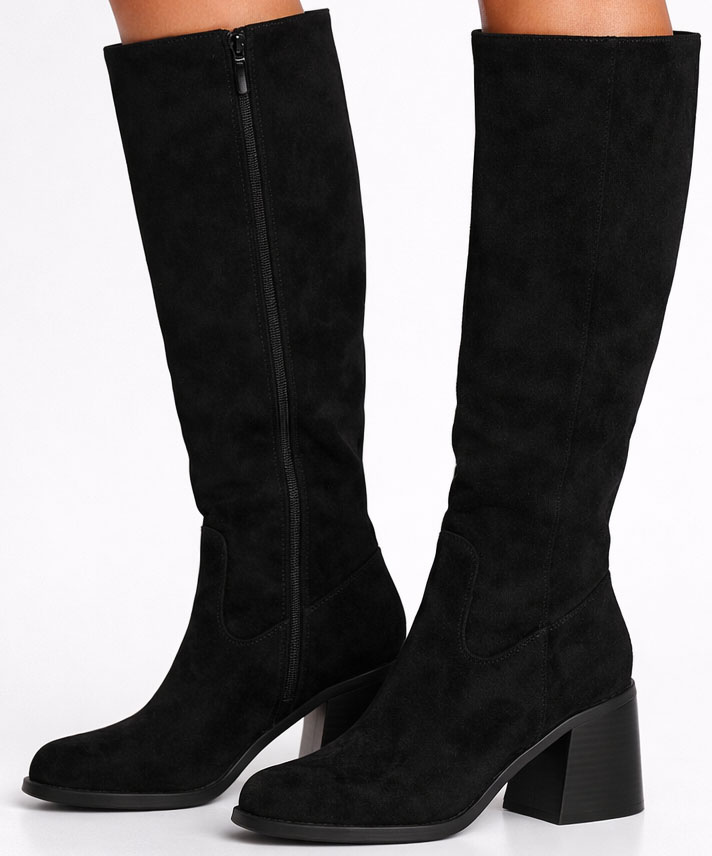 DAMSKIE CZARNE WYSOKIE KOZAKI ZAMSZOWE NA SŁUPKU