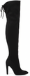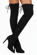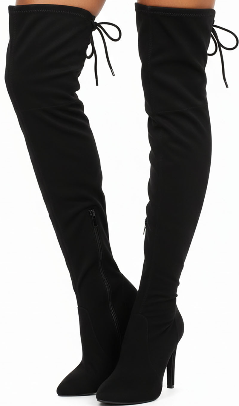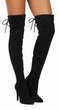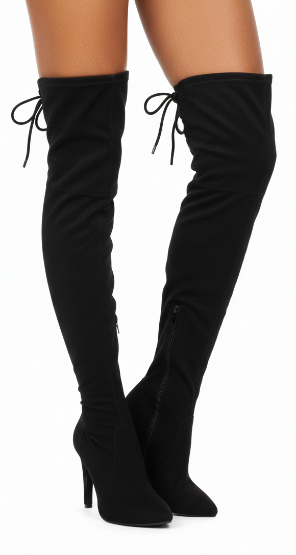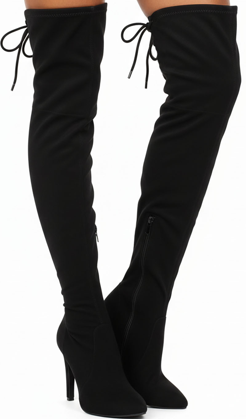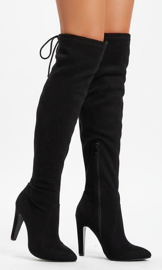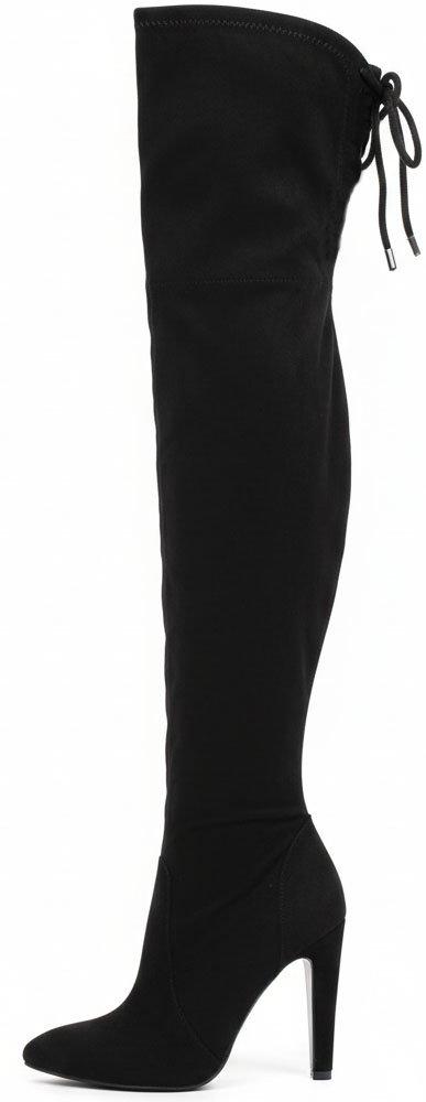 Te zmysłowe, czarne kozaki muszkieterki to kwintesencja jesienno-zimowej elegancji. Wykonane z imitacji zamszu, idealnie dopasowują się do kształtu nogi, podkreślając jej linię. Wygodny, stabilny, gruby obcas zapewnia komfort noszenia przez cały dzień, a nosek w szpic dodaje klasy. Cholewka buta zapewnia idealne dopasowanie. Zapinane na dyskretny zamek błyskawiczny po wewnętrznej stronie, ułatwiają zakładanie. Idealne do sukienek mini, spódnic i obcisłych spodni!
