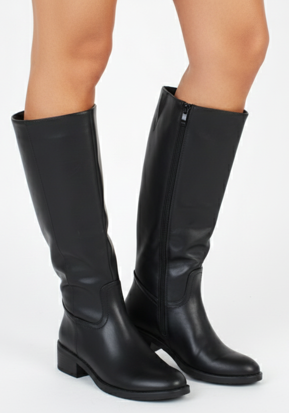 CZARNE DAMSKIE KOZAKI SKÓRZANE NA SŁUPKU ZAMEK RAMMA