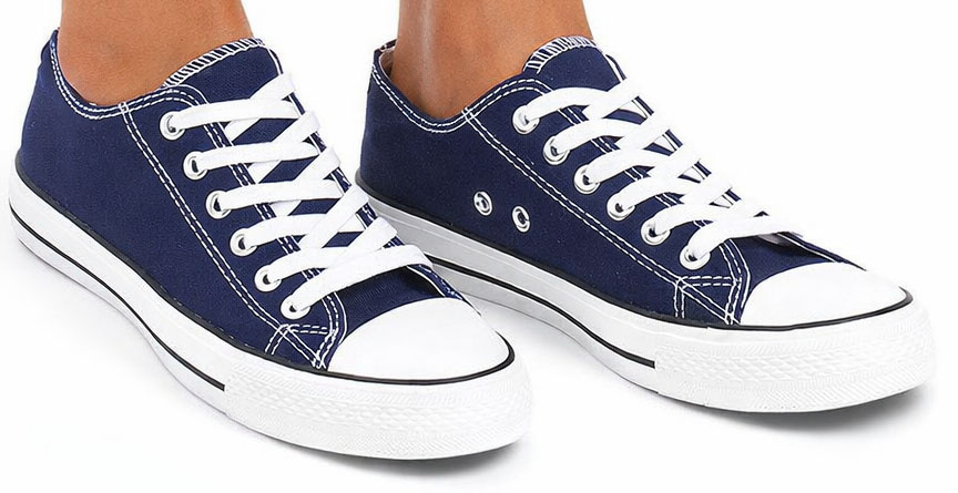 Niskie trampki, czyli klasyczne, granatowe tenisówki