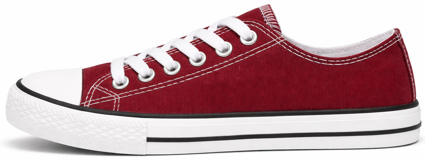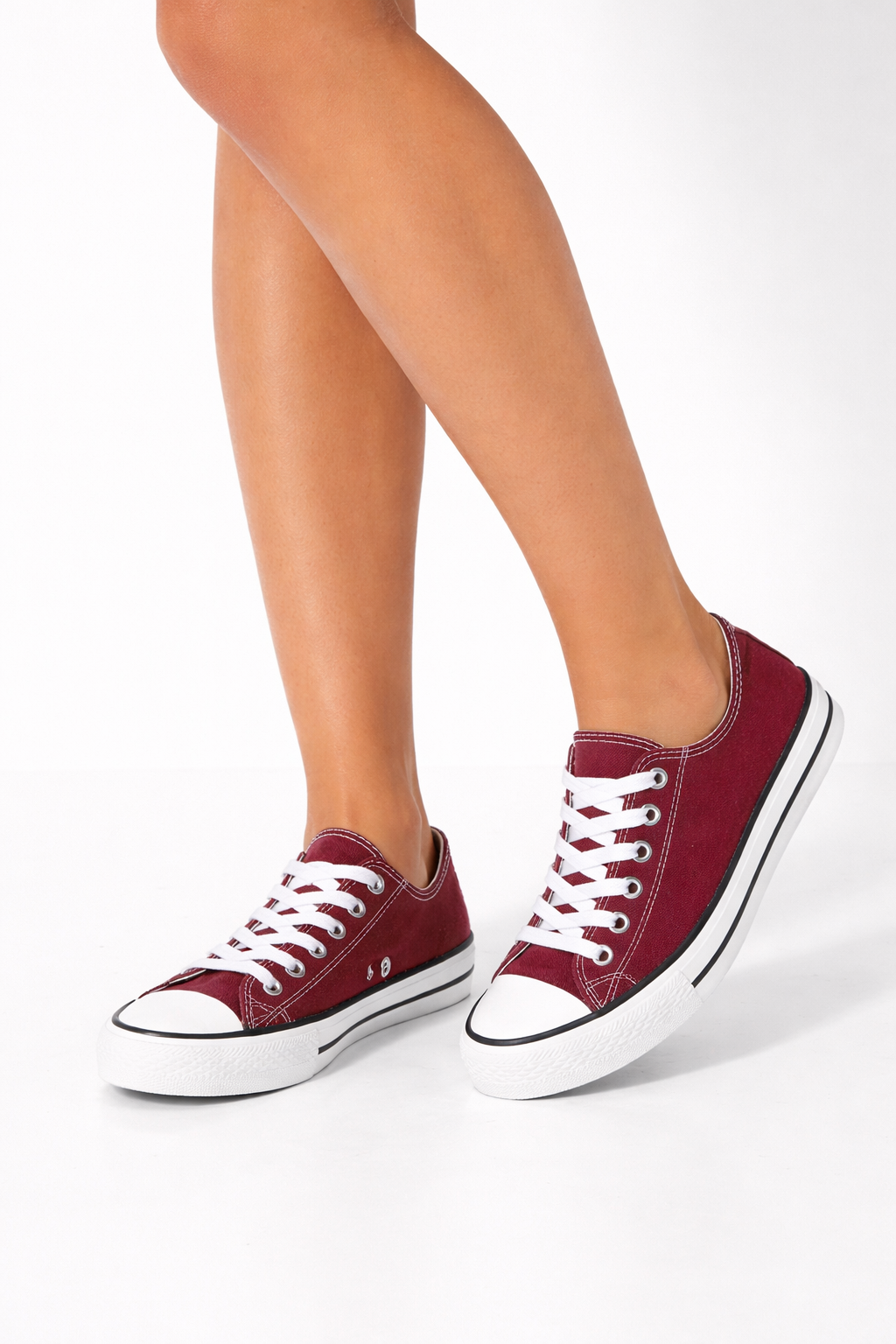 • Wygodne trampki na płaskiej podeszwie w bordowym kolorze są modnym i wygodnym dodatkiem do wielu stylizacji. Świetnie pasować będą zarówno do dżinsów i sukienek.