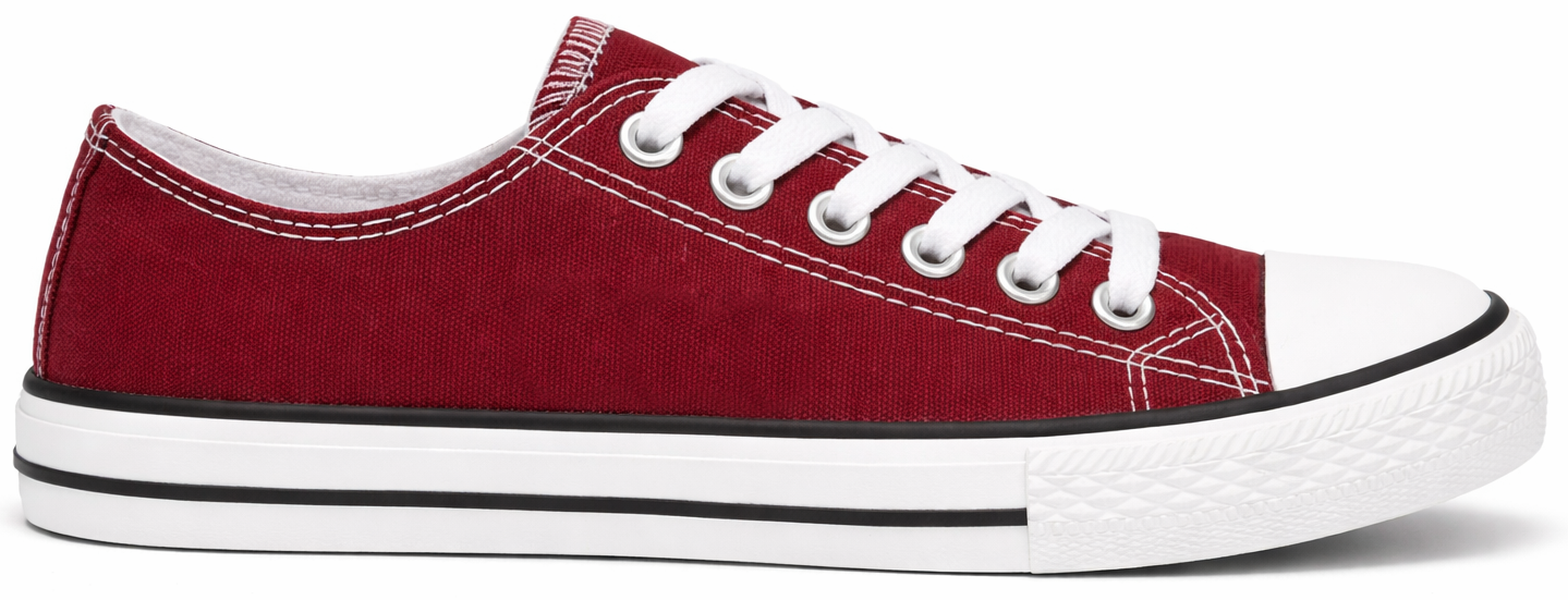 Wygodne trampki na płaskiej podeszwie w bordowym kolorze są modnym i wygodnym dodatkiem do wielu stylizacji. Świetnie pasować będą zarówno do dżinsów, krótkich szortów, jak i spódnic i sukienek. Możesz zestawić je z lekką i zwiewną sukienką w kwiaty, a na ramiona zarzucić dżinsową kurtkę – taka stylizacja sprawdzi się wczesną wiosną. Latem postaw na koszulkę z ciekawym napisem i krótkie dżinsowe szorty z lekko postrzępionym dołem, do których niskie trampki w bordowym kolorze pasować będą jak ulał. Ich dużą zaletą jest to, że pasują zarówno do sportowych, jak i eleganckich zestawień. Wykonane z wysokiej jakości materiałów tenisówki to buty, których nie może zabraknąć w Twojej szafie latem. Są idealne do szkoły, pracy, na spacer, zakupy lub randkę – bez względu na okoliczności w nich zawsze będziesz wyglądać dobrze.