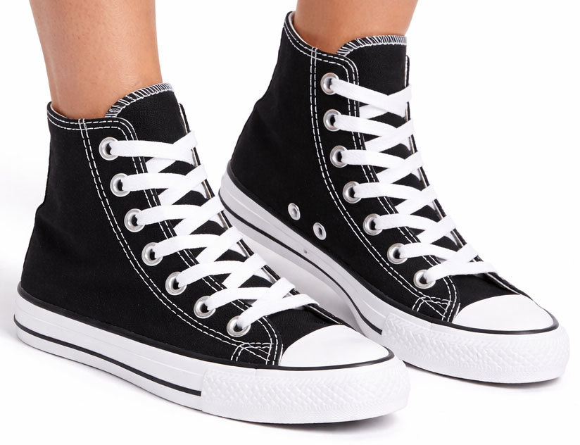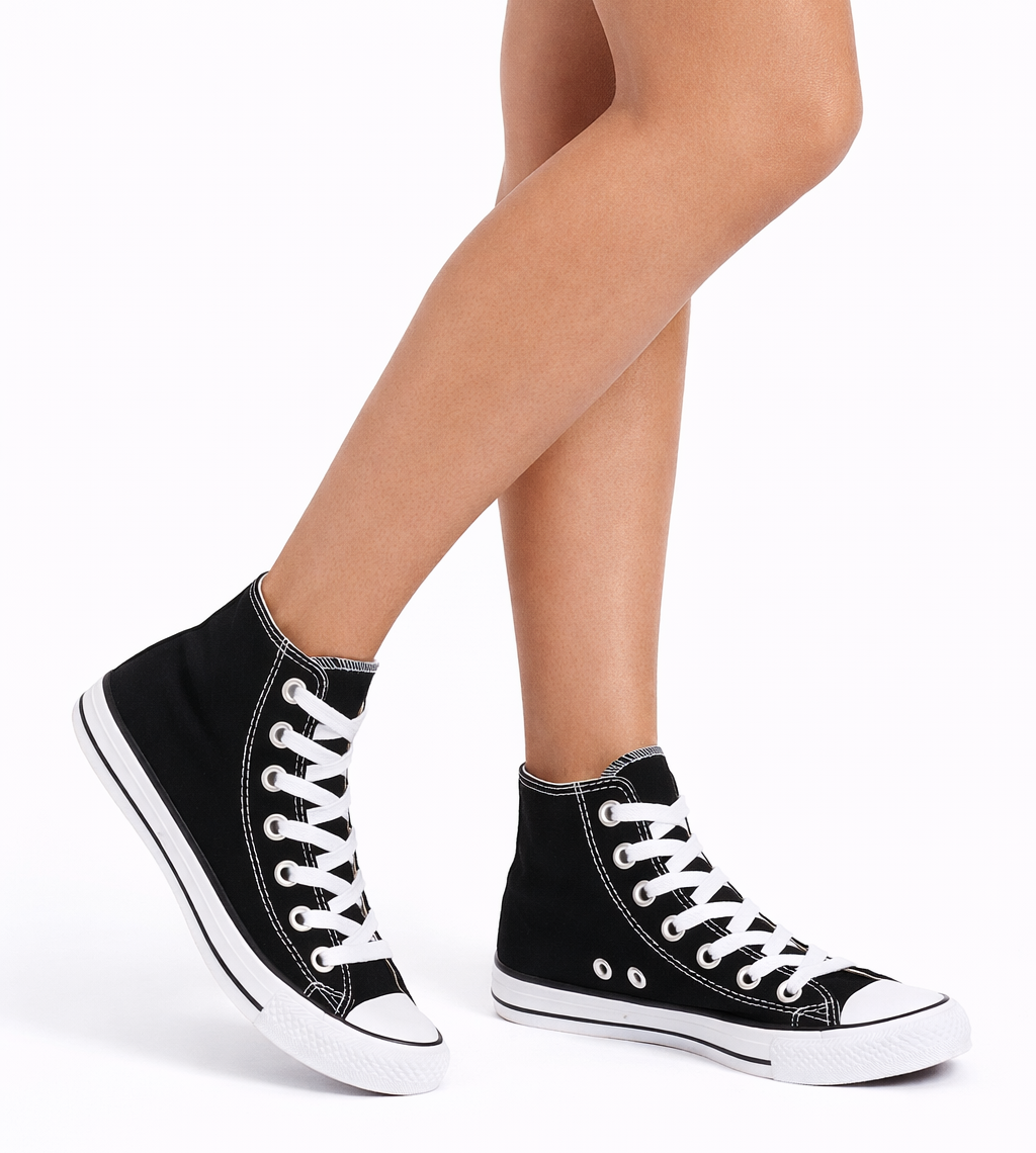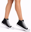 WYSOKIE KLASYCZNE CZARNE TRAMPKI TENISÓWKI SZNUROWANE