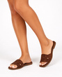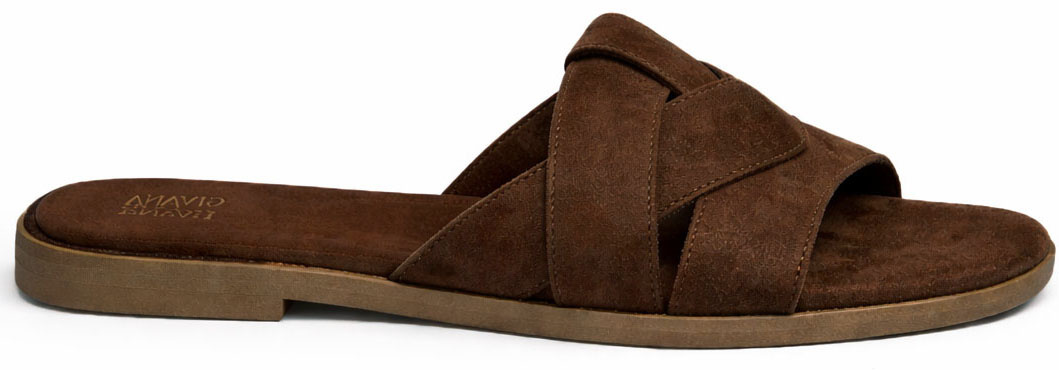 KLAPKI BRĄZOWE DAMSKIE ZAMSZOWE PASKI WSUWANE