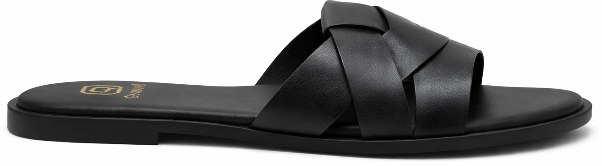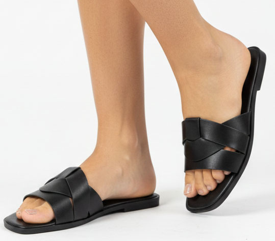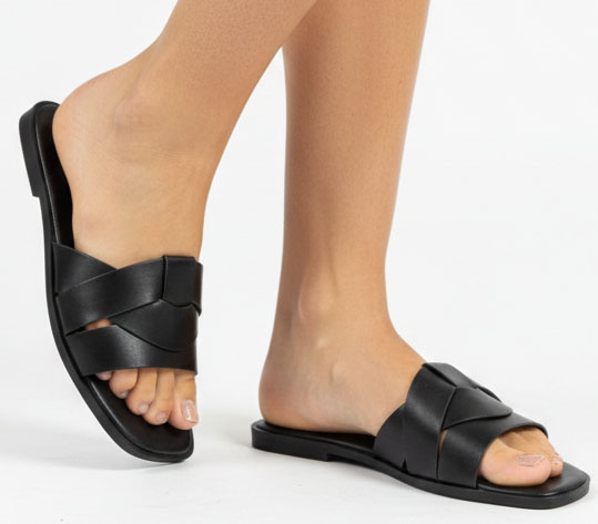 CZARNE KLASYCZNE KLAPKI WSUWANE DAMSKIE SKÓRZANE