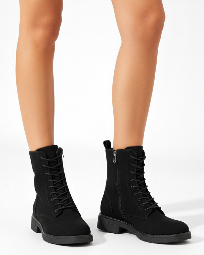 Zapięcie na zamek umieszczone z boku cholewki ułatwia zakładanie i zdejmowanie botków, co jest praktyczne i wygodne, zwłaszcza w pośpiechu.