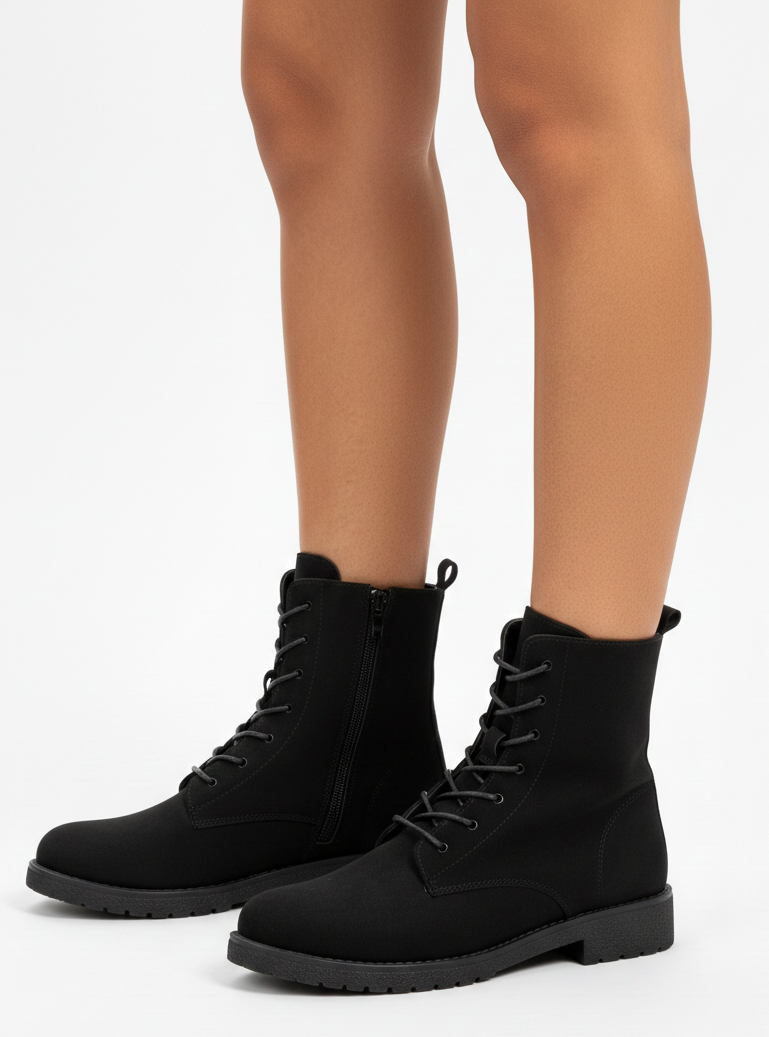 DAMSKIE CZARNE ZAMSZOWE BOTKI TRAPERY OCIEPLANE