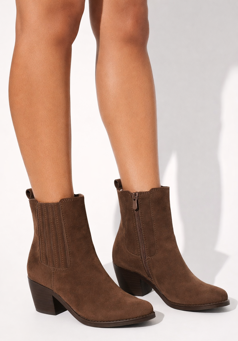 Modne i stylowe botki z zamszową cholewką, które łączą w sobie elegancję z wygodą. Te botki są idealne na jesienne i zimowe dni, oferując zarówno modny wygląd, jak i komfort noszenia.