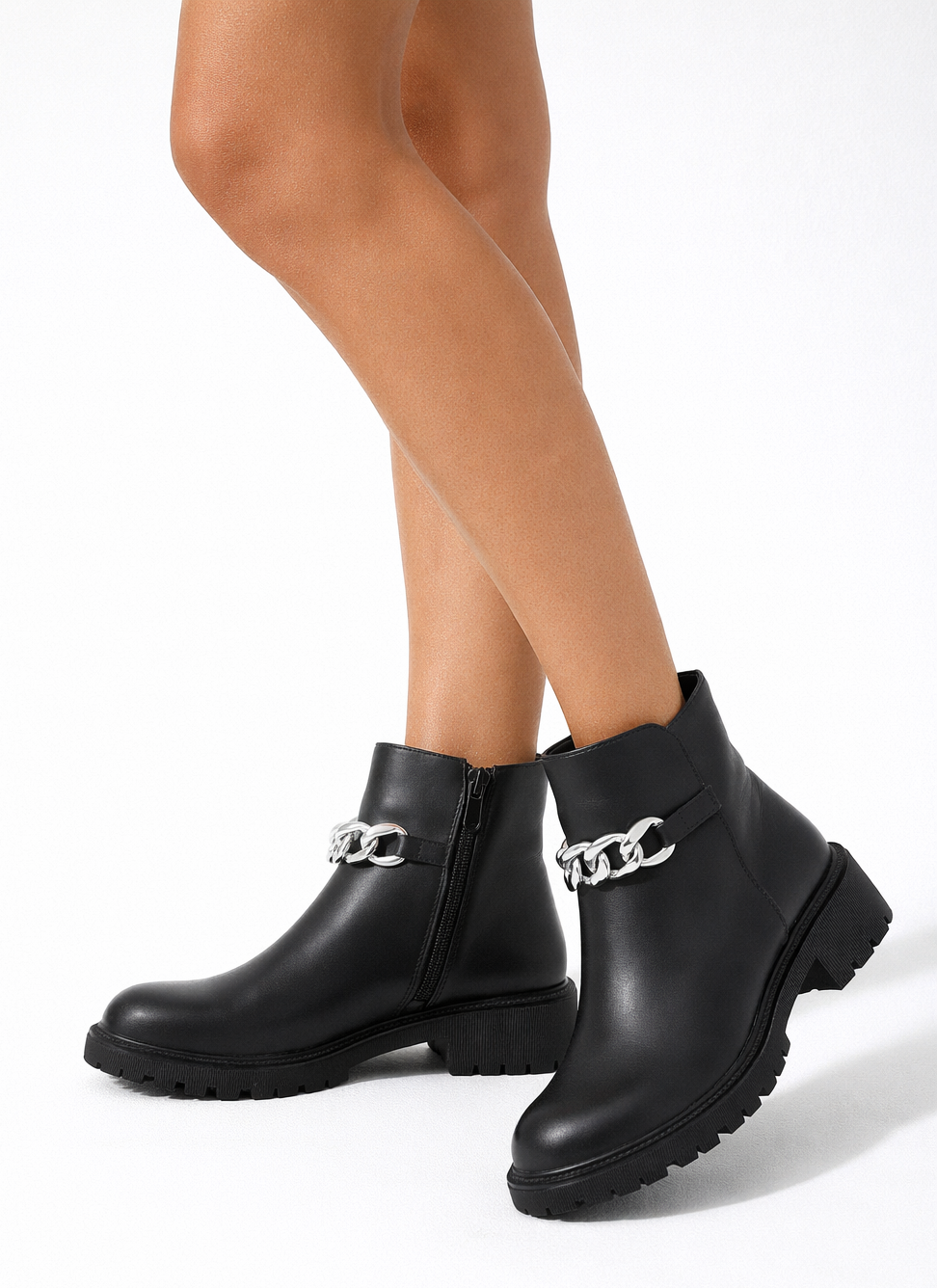 CZARNE DAMSKIE BOTKI NA PLATFORMIE SKÓRZANE ZAMEK