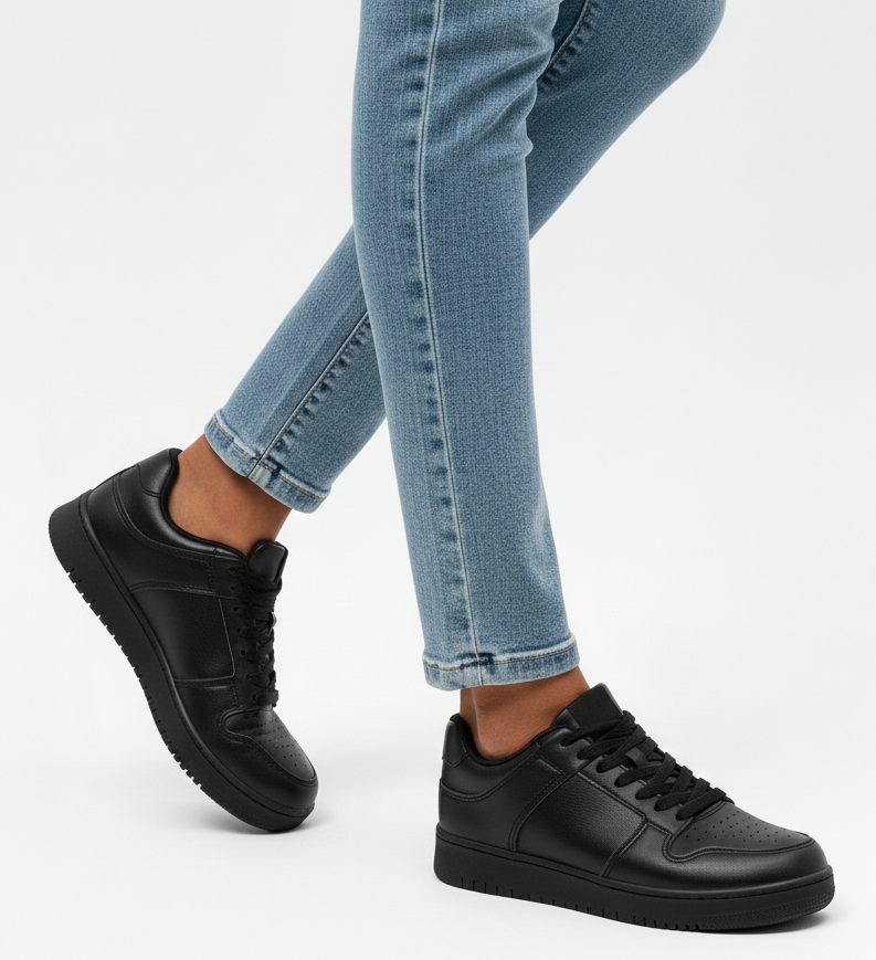 DAMSKIE CZARNE SNEAKERSY TRAMPKI SKÓRZANE SZNUROWANE