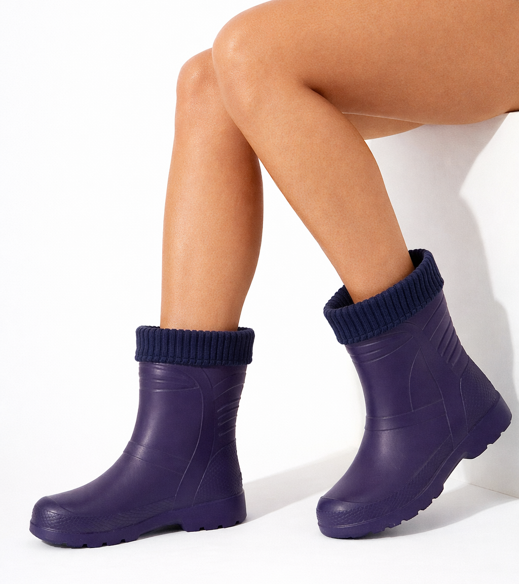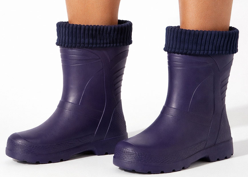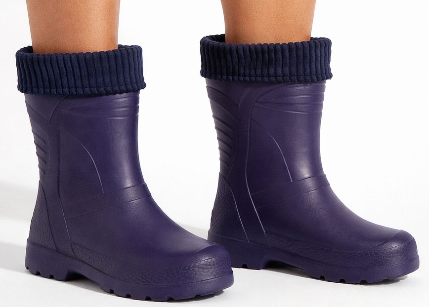 • Model wykonany z tworzywa gumowego, nieprzemakalne i wyposażone w antypoślizgową podeszwę. Kalosze z wysoką cholewką, idealne na deszczową pogodę.